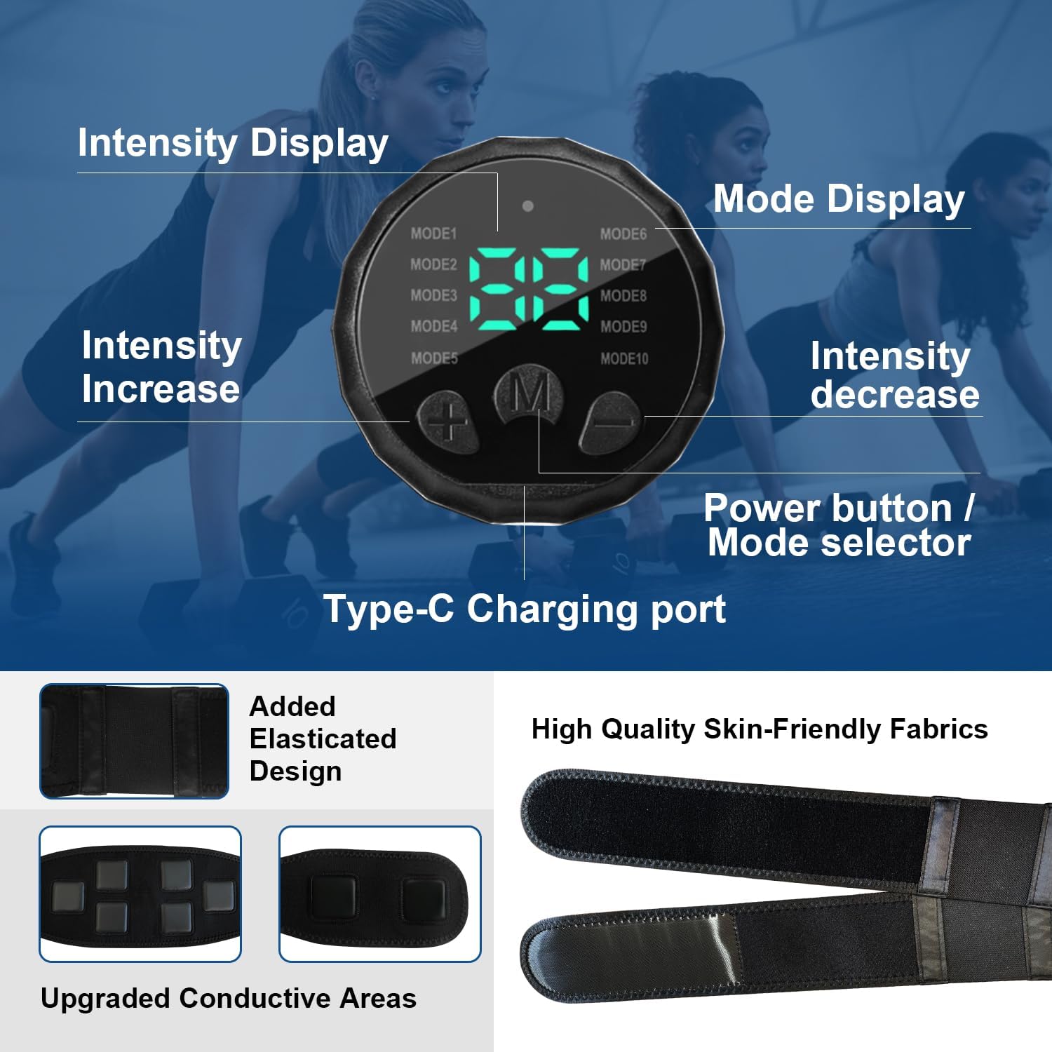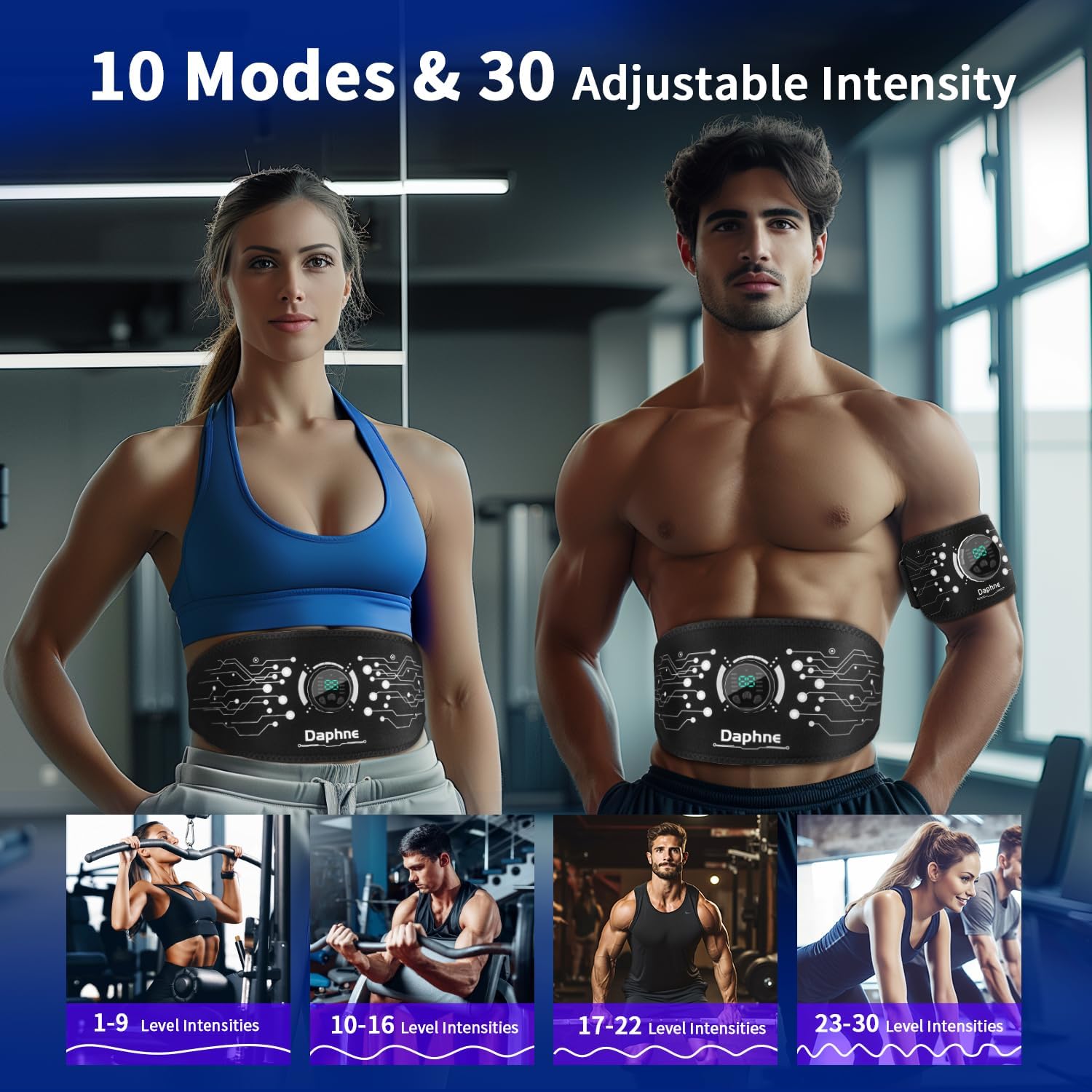 10 Modes & 30 Intensity Levels – The ab stimulator muscle toner has 10 modes and 30 intensity levels, allowing users to customize their training programs to fit the fitness goals. After using it for a while, you will get tight abdominal muscles and improved muscle strength.