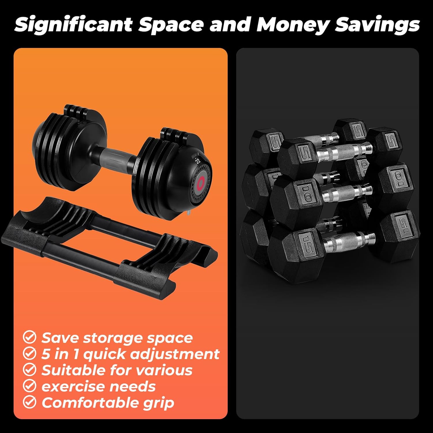 【Cost-Effective Fitness Solution】Compared to traditional dumbbells, Roinoim Adjustable Dumbbells offer exceptional cost-effectiveness. With just one set, you can perform a wide range of full-body exercises in the comfort of your home, saving you money while achieving comprehensive fitness goals.