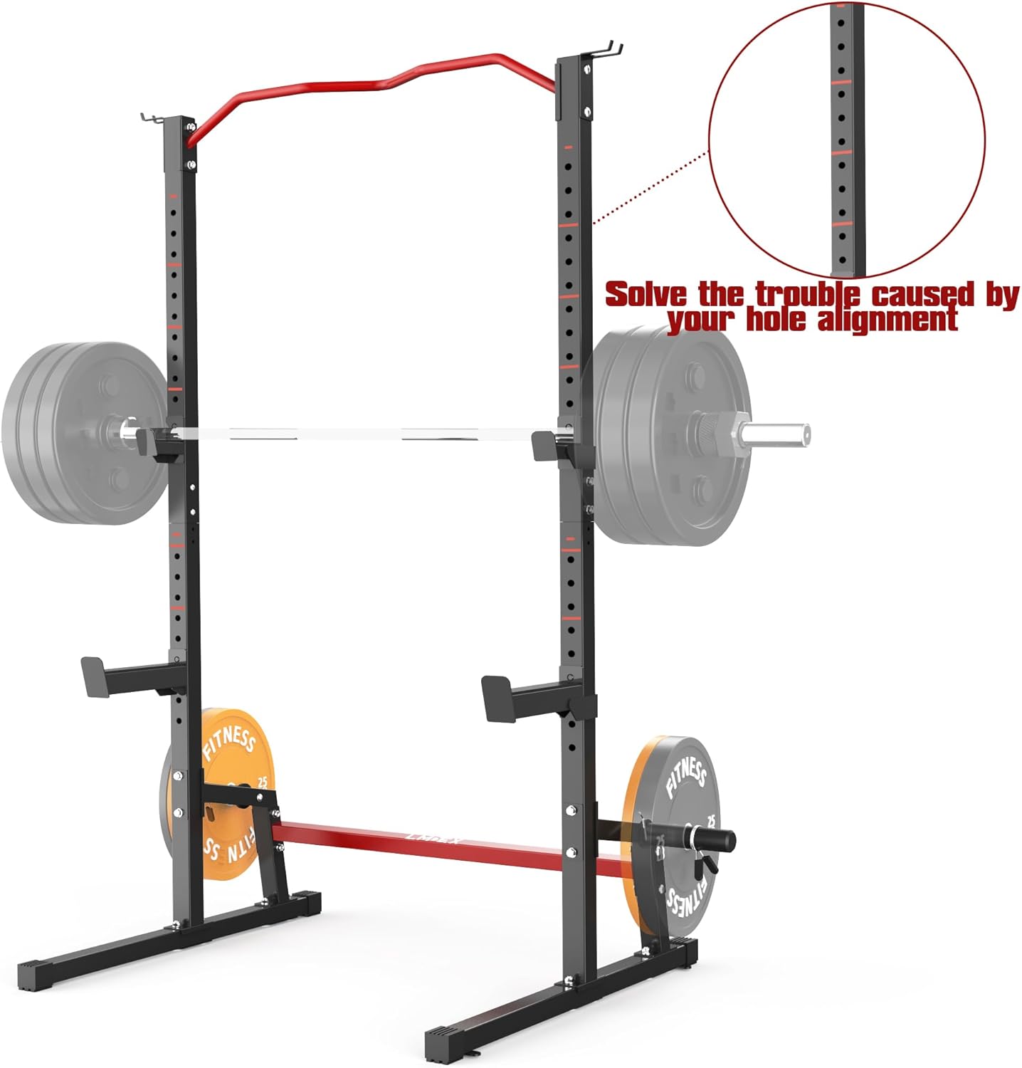 【HEAVY DUTY】Squat rack is made of high-quality steel,With the height hole,these can be adjusted height enhance the stability of the rack.