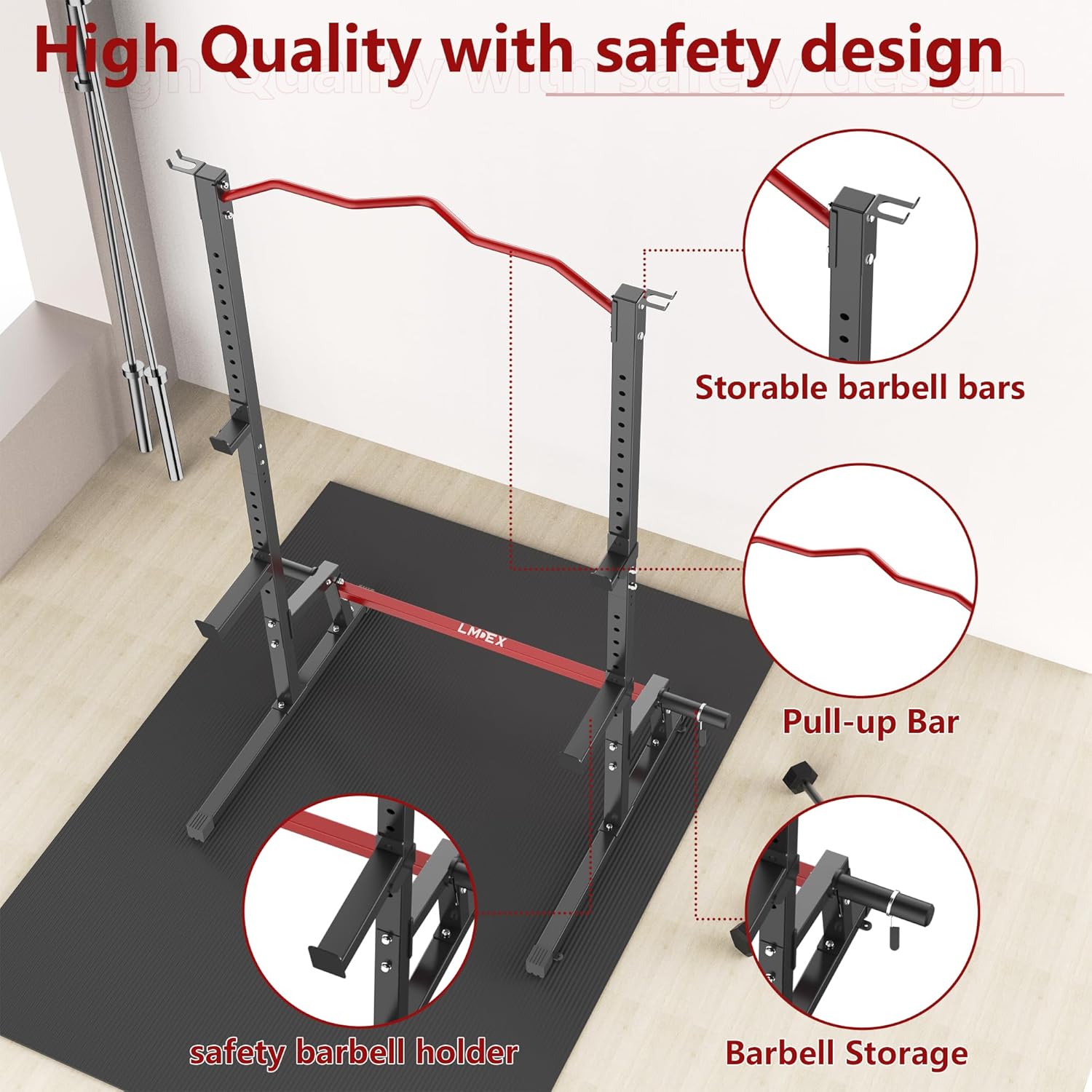 Adjustable Squat Rack Barbell Rack Squat Stand Bench Press Pull Up Home Gym