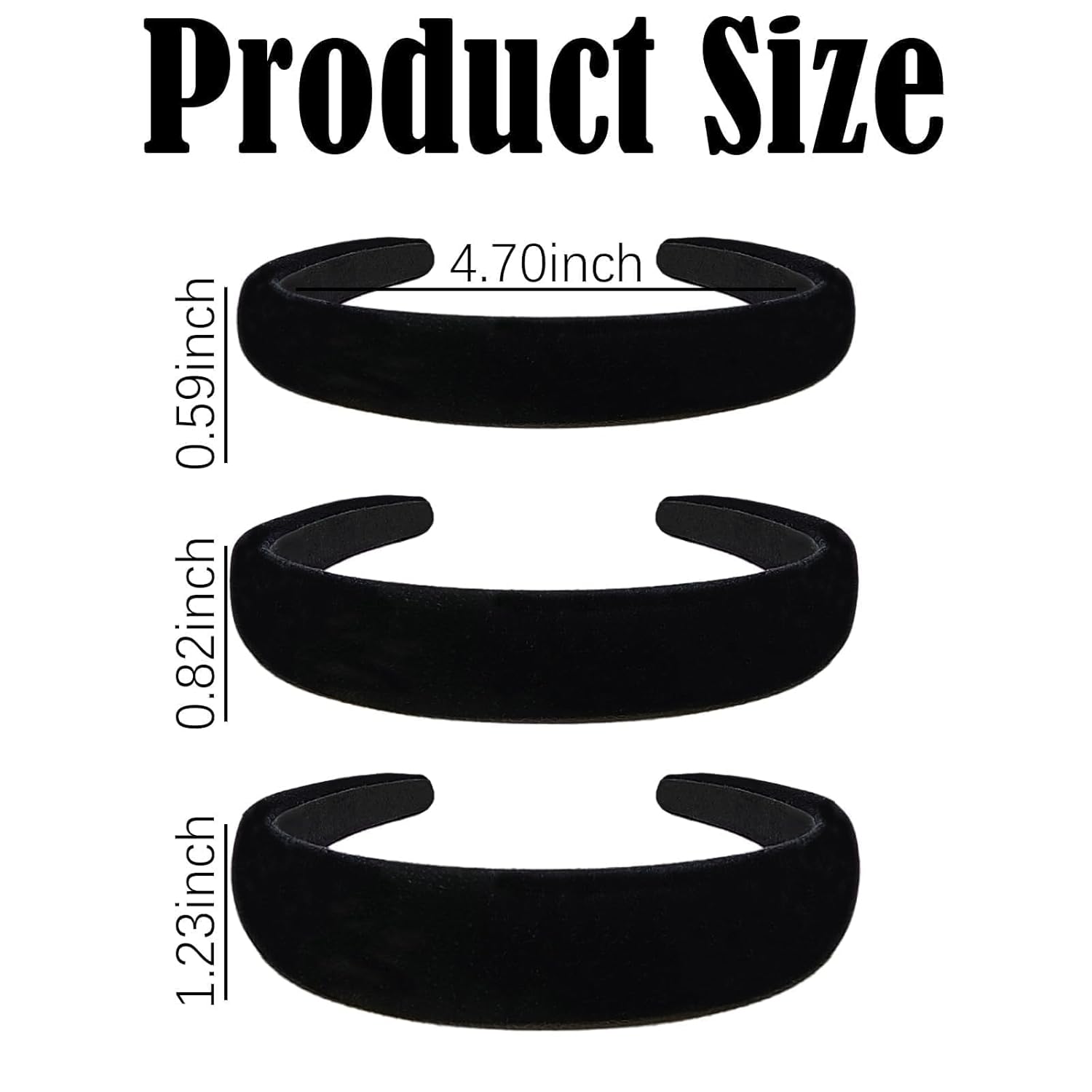 AUDTOPE Black Velvet Padded Headbands for Women, Soft Simple Headband for Girls and Teens, Plain No Teeth Thick Hoops Hair Accessories