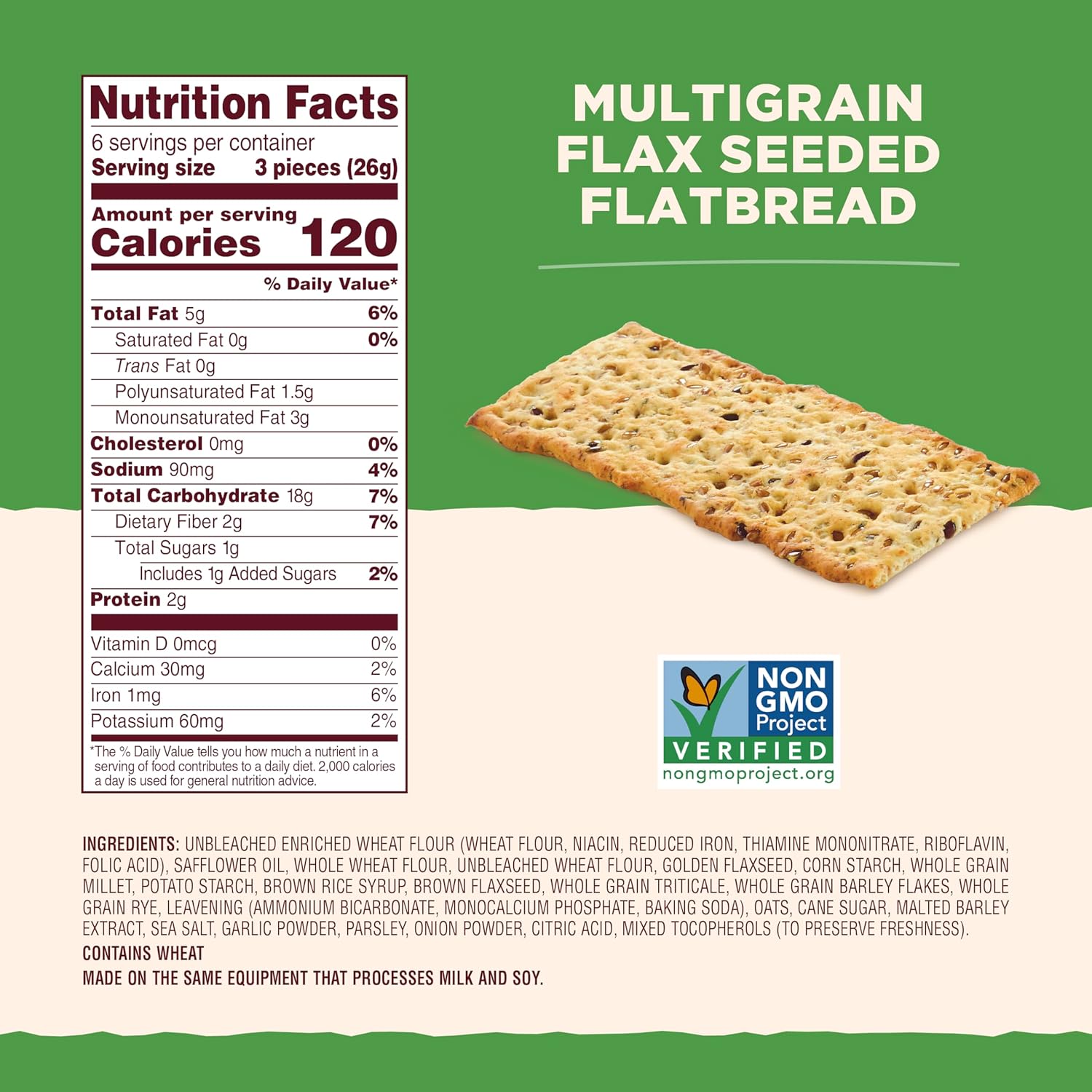 SATISFY YOUR SALTY CRAVINGS: These crispy baked flatbreads combine the nutty flavor of flax seed with savory seasonings for the perfect bite. Eat as-is, or use as a crunchy base for your favorite topping.