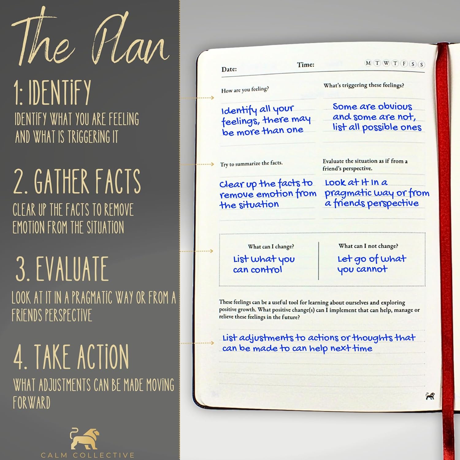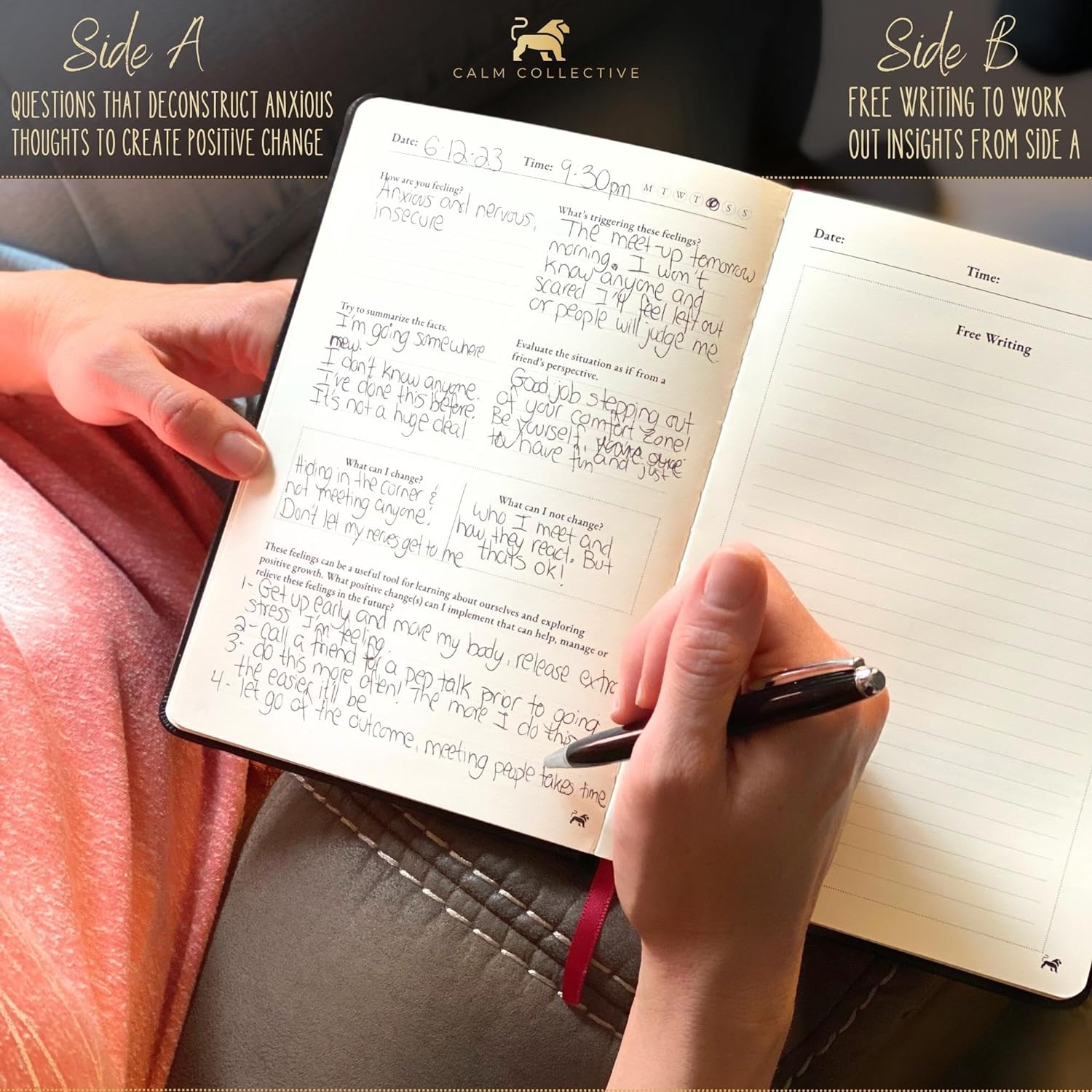 Calm Collective Guided CBT Anxiety Relief Journal Kit for Mental Health Therapy with Free Pen Included, Mindfulness Self Care Prompts, Gratitude & Habit Tracker, Wellness Gift Diary Notebook