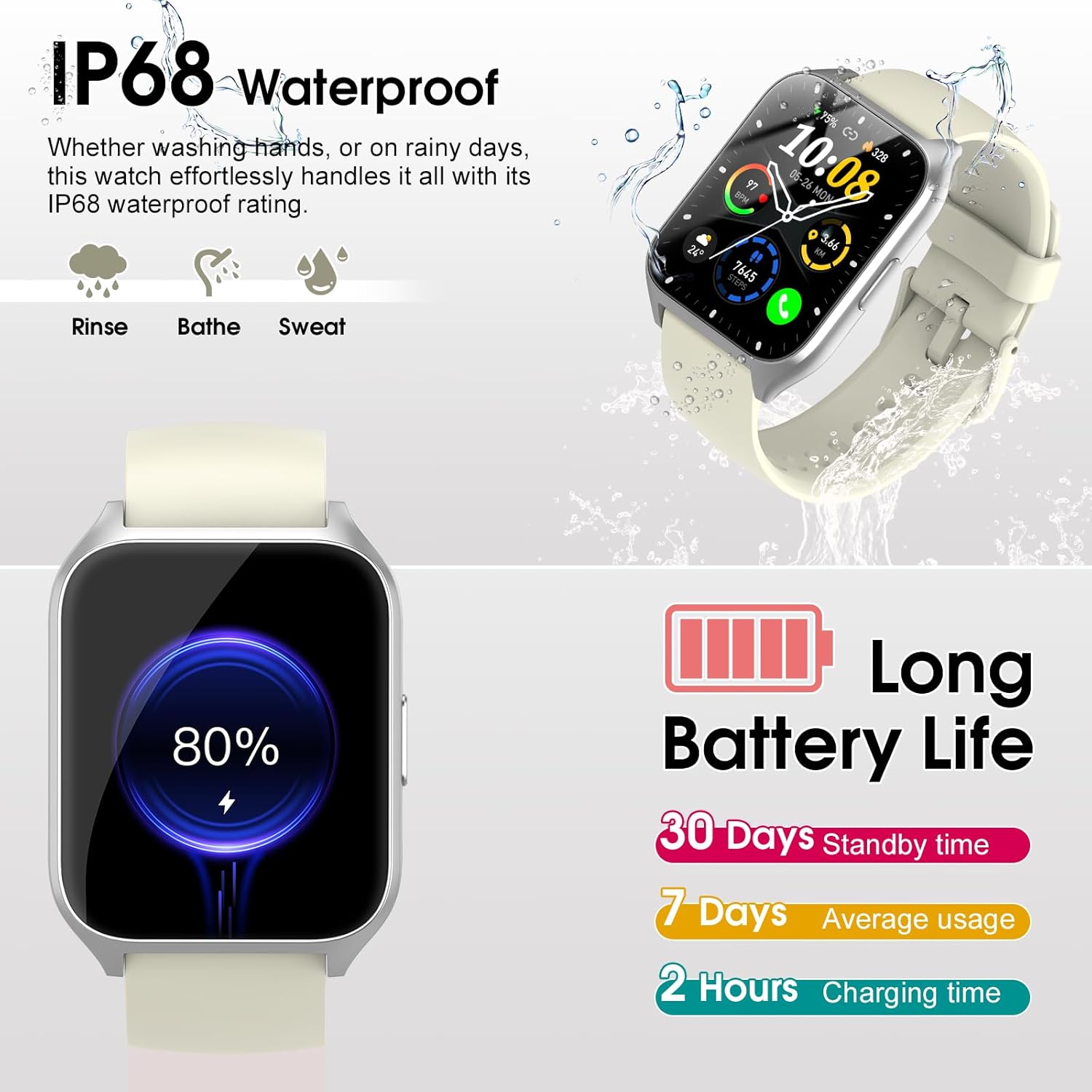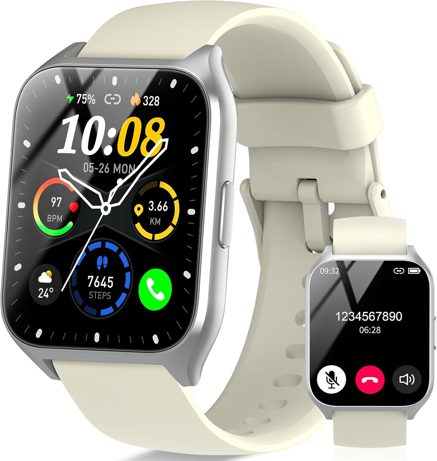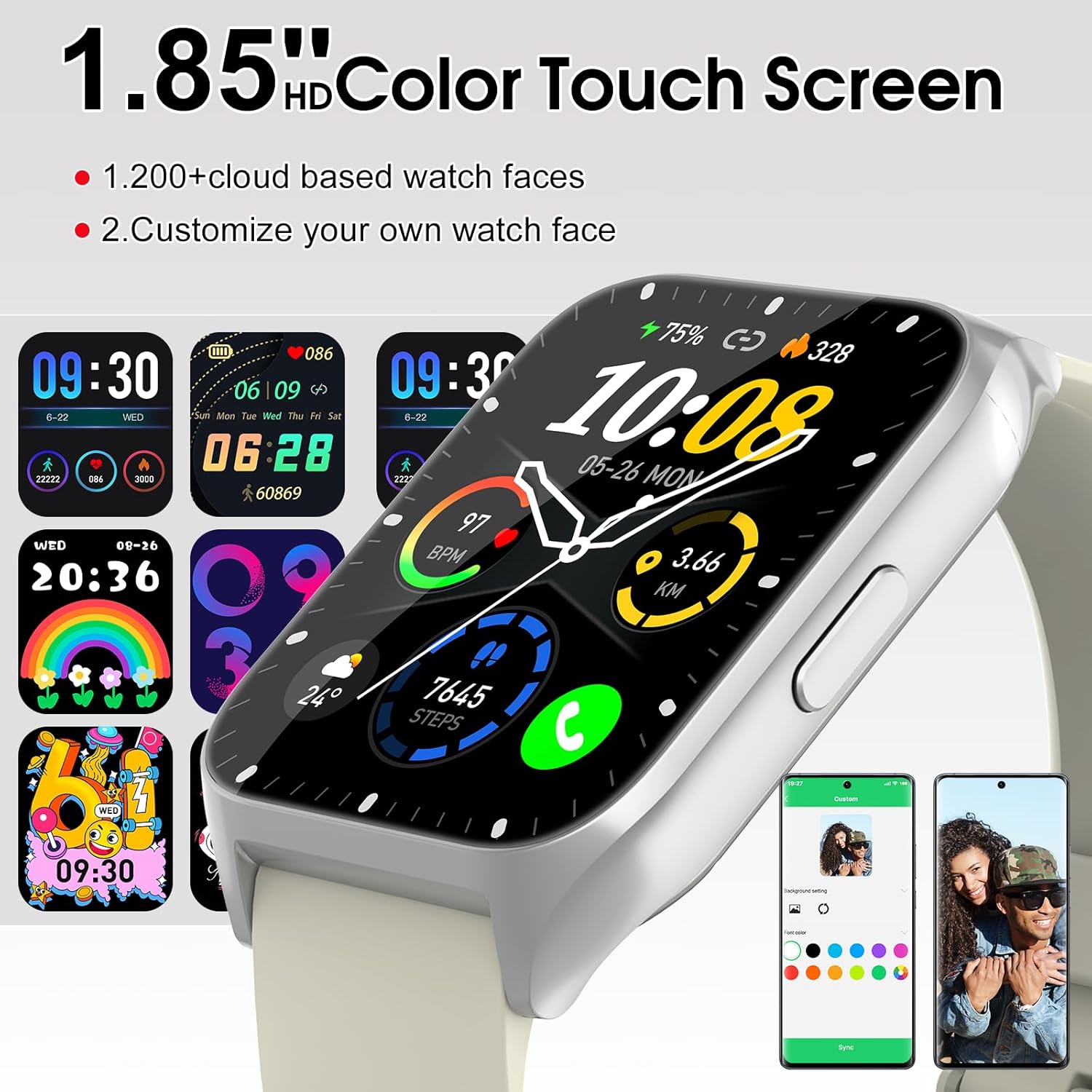 DUSONLAP Smart Watch, 1.85″ HD Smartwatches for Men Women (Answer/Make Calls), 100+ Sport Modes Fitness Tracker Watch, Heart Rate/Sleep Monitor, IP68 Waterproof Activity Tracker, Smartwatch Bee White