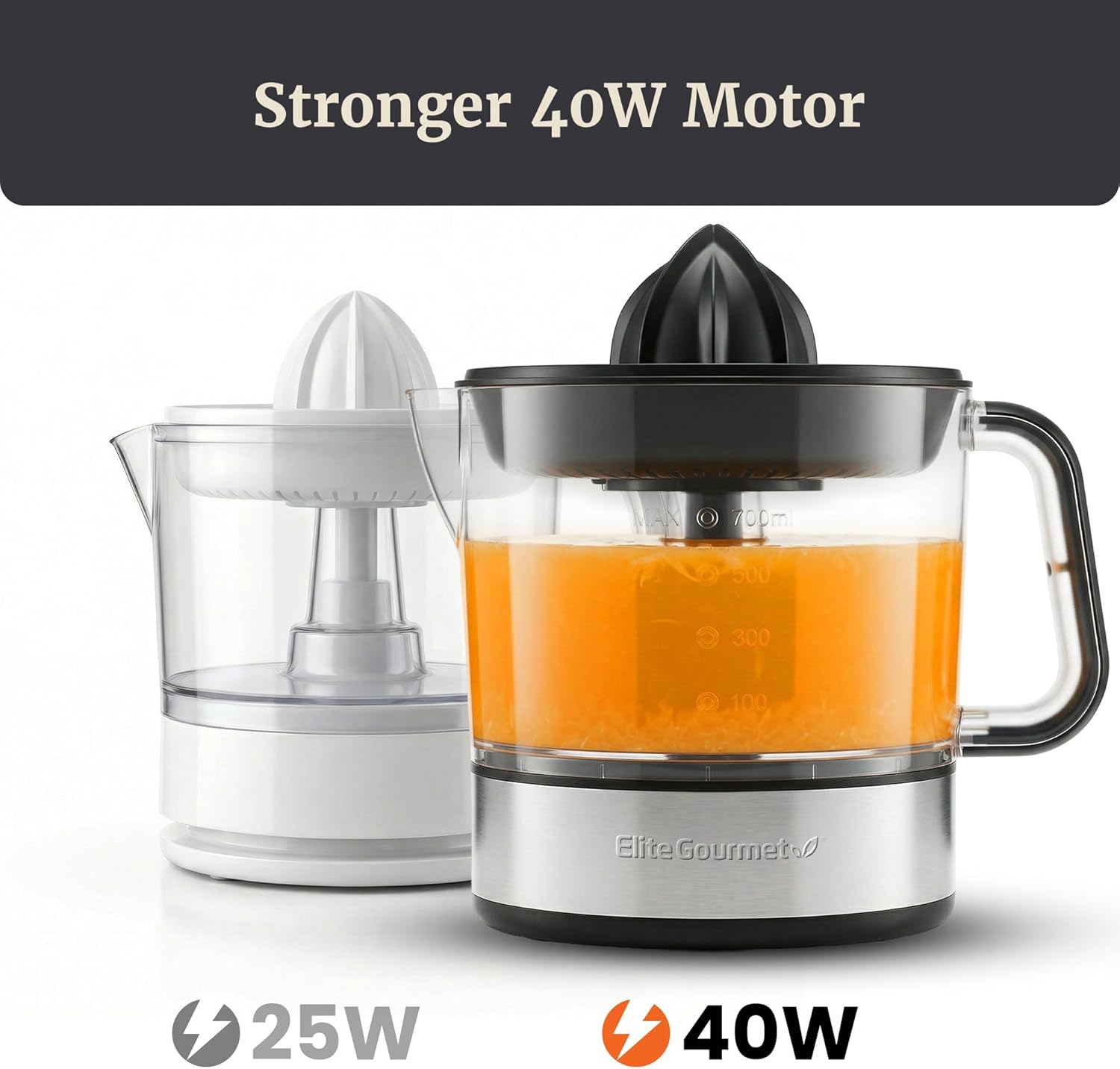 MORE POWER THAN STANDARD 25W MODELS: Equipped with a stronger 40W motor and auto-reversing extraction for faster juice yield vs. typical 25W citrus juicers. Designed for smooth, efficient home juicing.