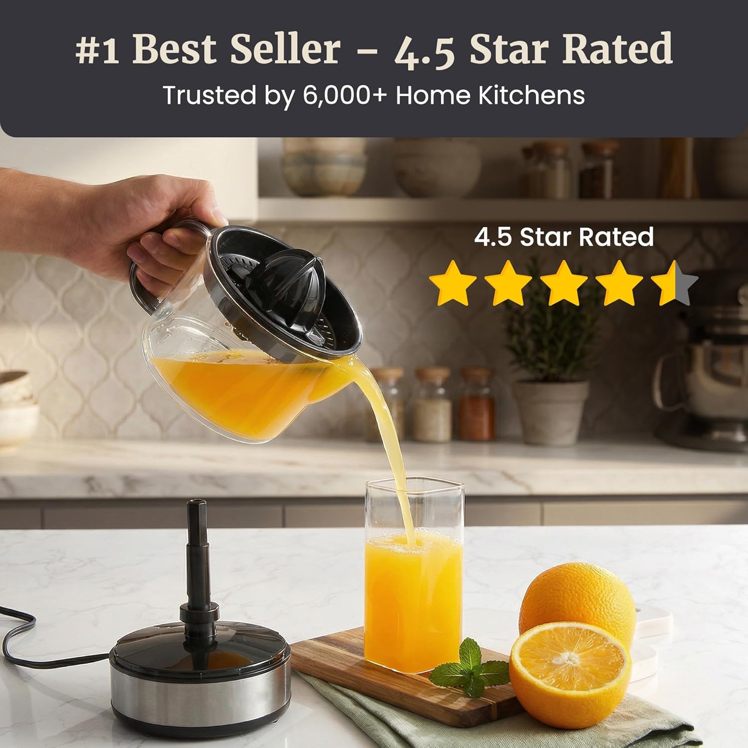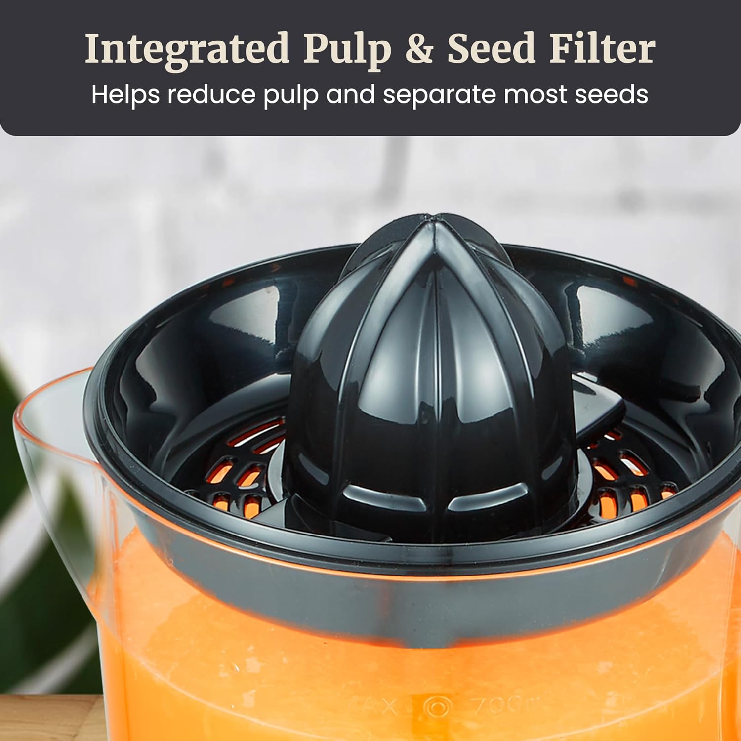 AUTO-REVERSING REAMER FOR BETTER EXTRACTION: Dual-direction rotation helps extract more juice from oranges, lemons, limes, and grapefruit with effortless push-down activation.