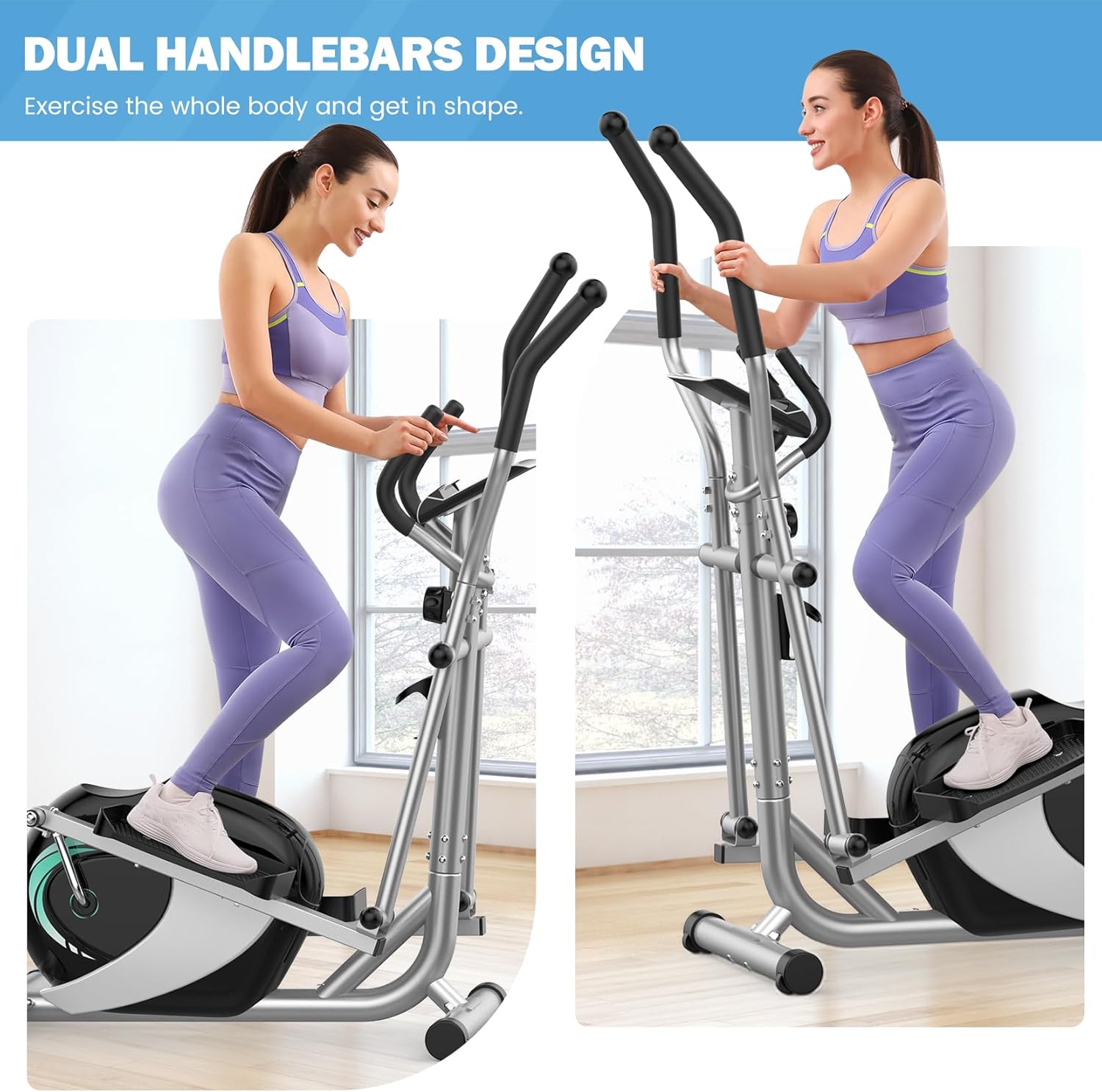 I couldnât be happier with the Elliptical Training Machine! This machine has exceeded my expectations in every way. The hyper-quiet design truly lives up to its promise. Even during intense workouts, it operates smoothly and silently, making it perfect for shared spaces or early morning sessions without disturbing anyone. The 8 resistance levels are fantastic for tailoring workouts to my fitness goals, whether Iâm doing a light cardio session or pushing for high-intensity training.The 6KG flywheel provides a seamless and natural stride, comparable to the elliptical machines at the gym. I also love the additional features, like the pulse monitor and LCD display, which make it easy to track my heart rate, calories burned, and overall progress. The device mount is a thoughtful touchâI can keep my phone or tablet secure while following a workout video or watching a show.Despite its compact size, the machine feels incredibly sturdy and well-built. It doesnât take up much space, but it remains stable even during vigorous workouts.