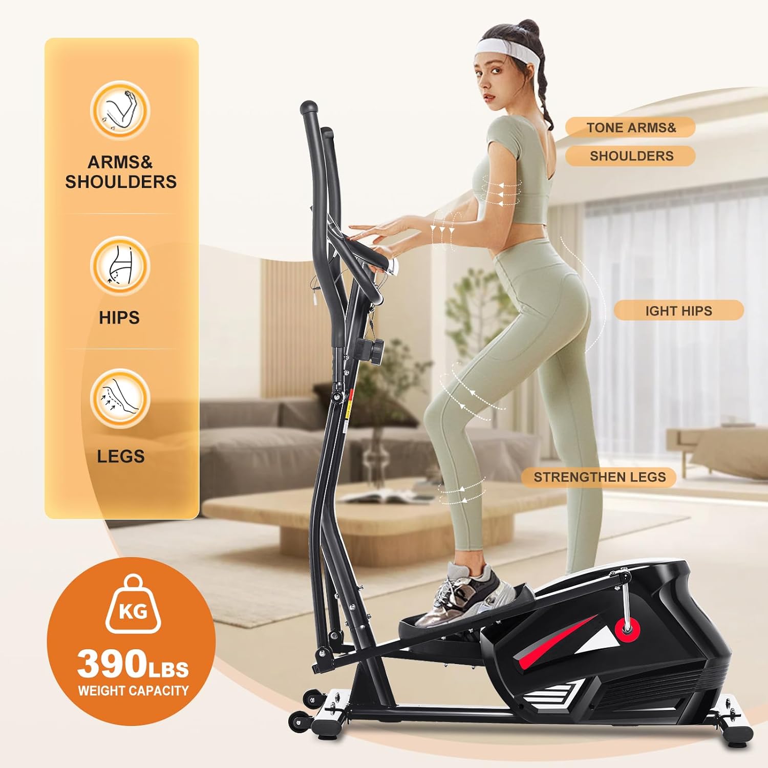 Adjustable Magnetic Resistance: This elliptical machine features 10 levels of easily adjustable magnetic resistance, making it suitable for users of all fitness levels. Quickly switch between resistance levels to customize your workout intensity.