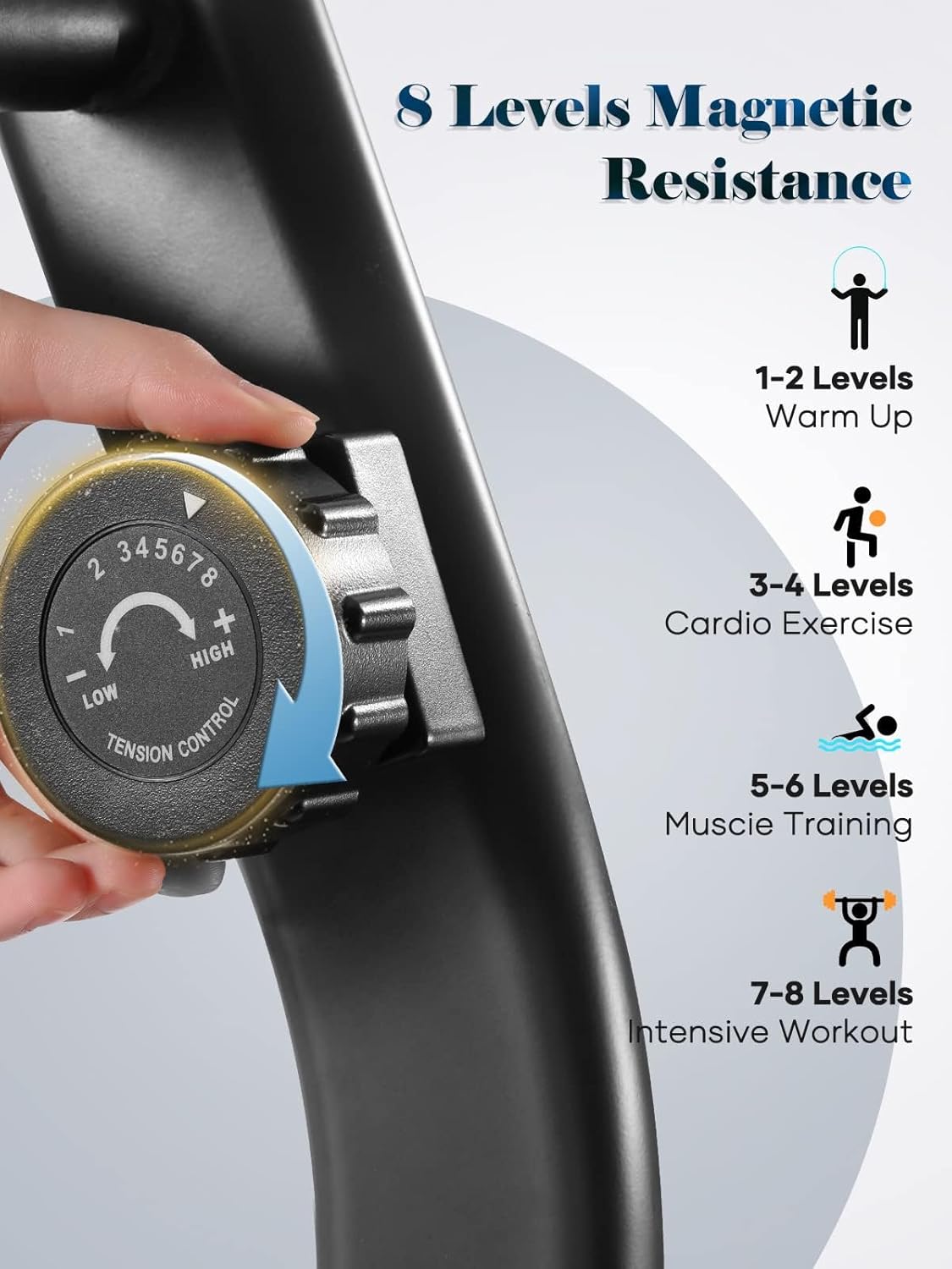 8 Level Magnetic Resistance: With 8 levels of resistance this recumbent exercise bike gives you different exercise intensity options, giving you the flexibility to tailor your workout to your fitness level.The recumbent exercise bike is ideal for casual ride. The movement that engages the whole body, virtually anyone to start a comfortable and low-impact workout, especially seniors and deconditioned people