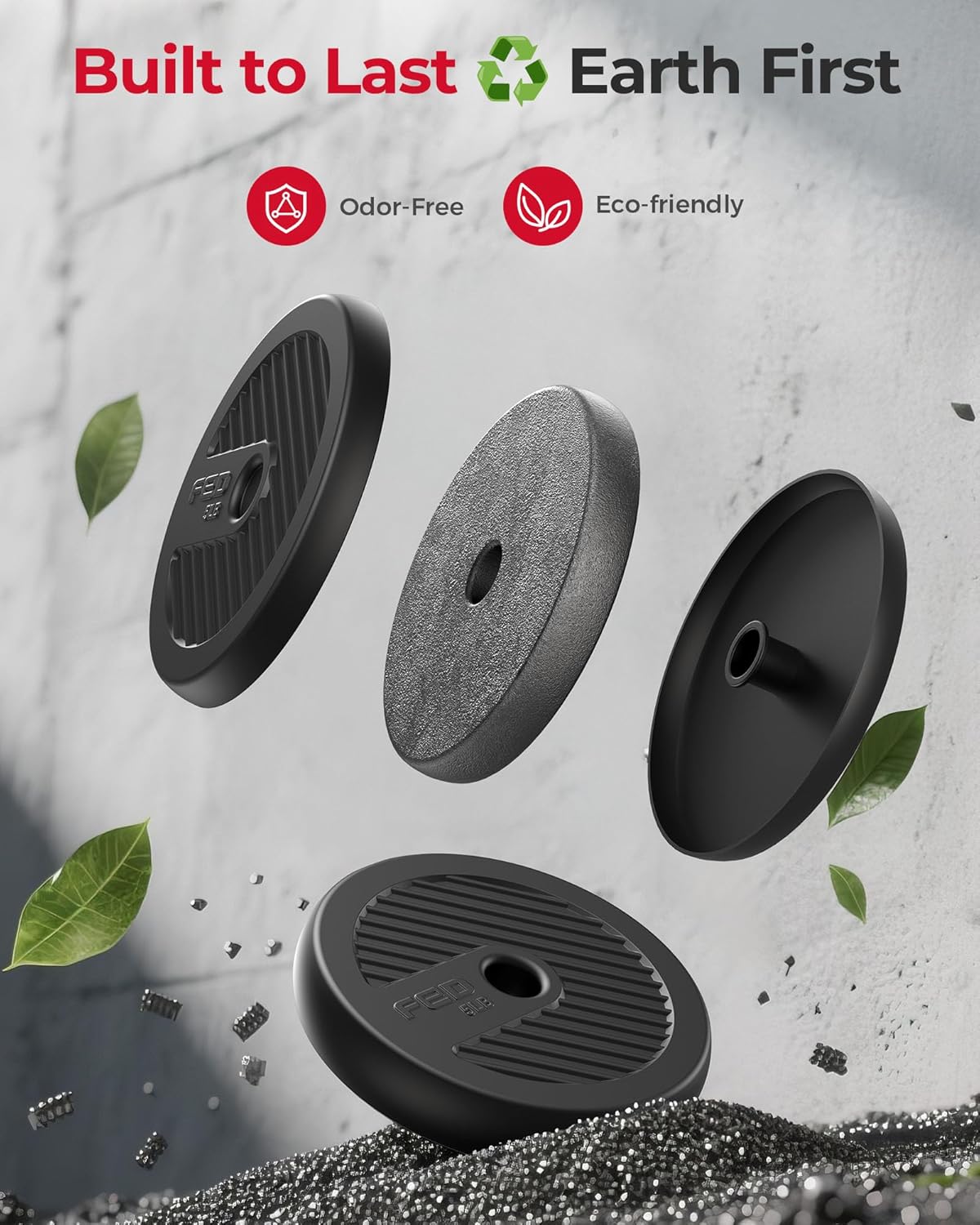 【Durable & Odorless】Environmentally dumbbell pieces’ exterior is made of high-quality PE materials, and the inside is mixed with iron, mud, and sand, which effectively prevents floor abrasion. No rust, no smell. Please use it with confidence!