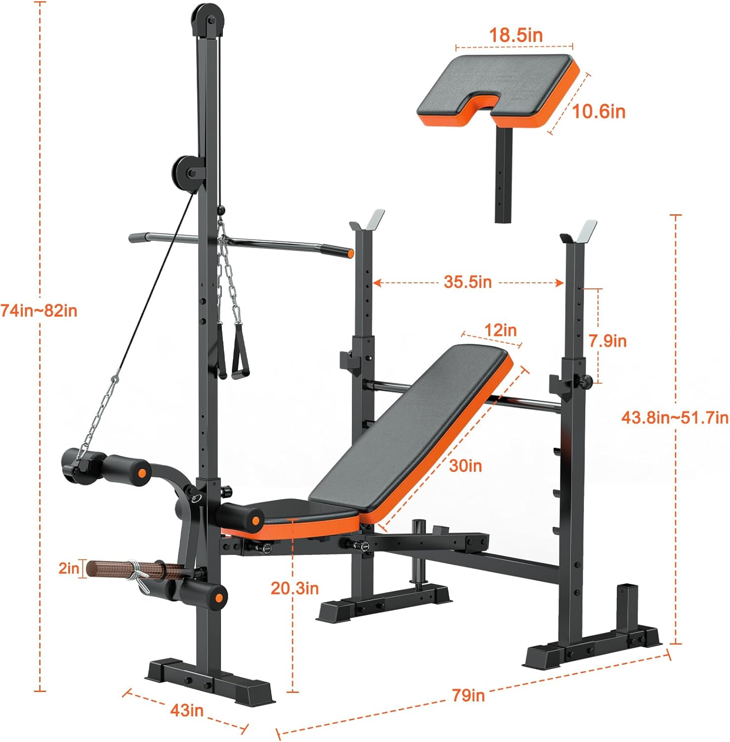 8 reviews for Fostoy 880lbs Weight Bench Set with LAT Pulldow, Bench Press Rack with Leg Extension/Curl and Preacher Curl, 8 in 1 Olympic Weight Benches for Home Gym Full-Body Adjustable Strength Training Equipment