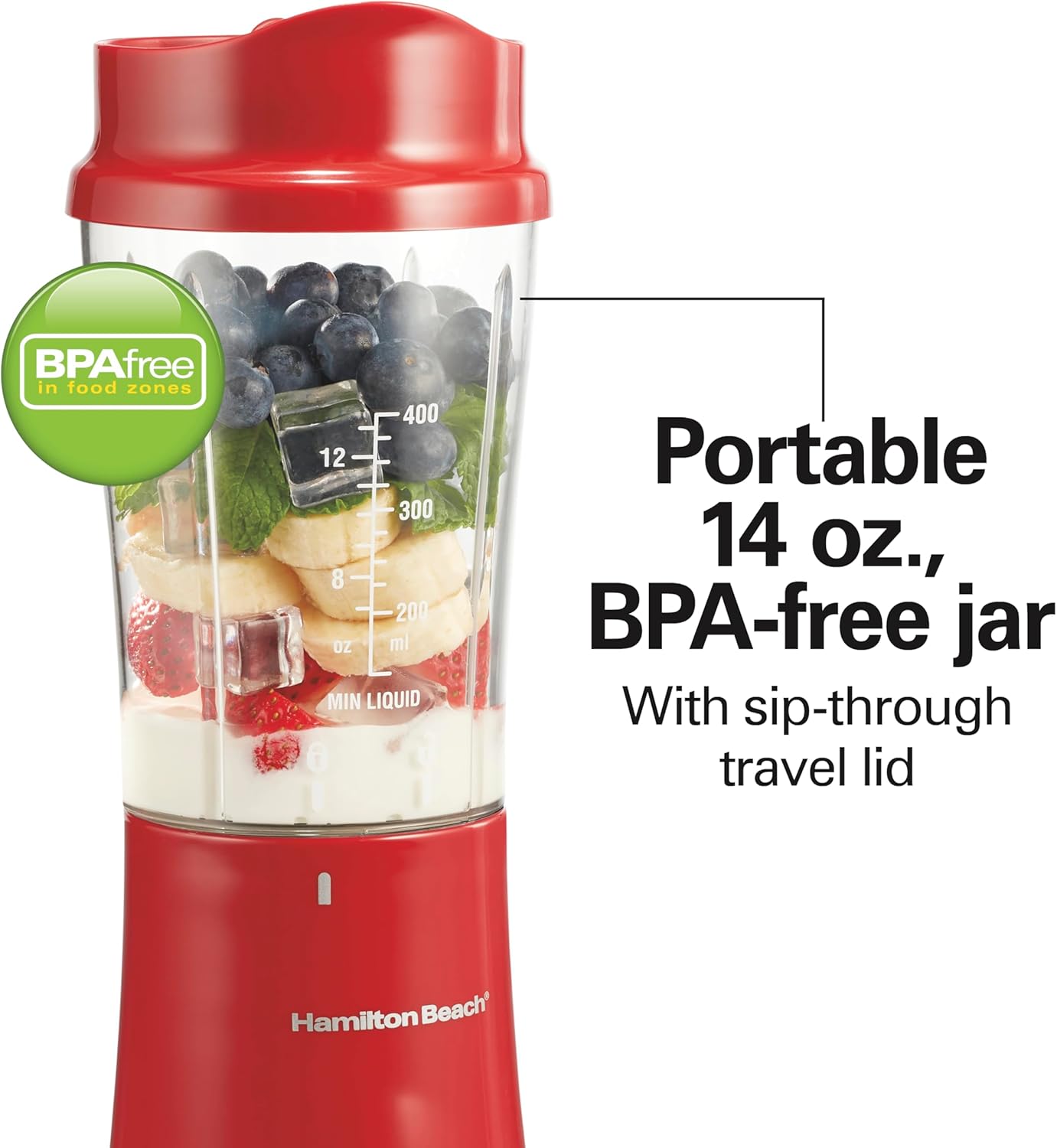 THE ORIGINAL BLEND AND GO PERSONAL BLENDER: Bring home the excellent blending performance you expect with the historic Hamilton Beach brand. This small smoothie blender blends fruit smoothies, shakes and your favorite icy drinks. Hamilton Beach has excelled in appliance innovation since 1911 and has pioneered personal blending since 2003.