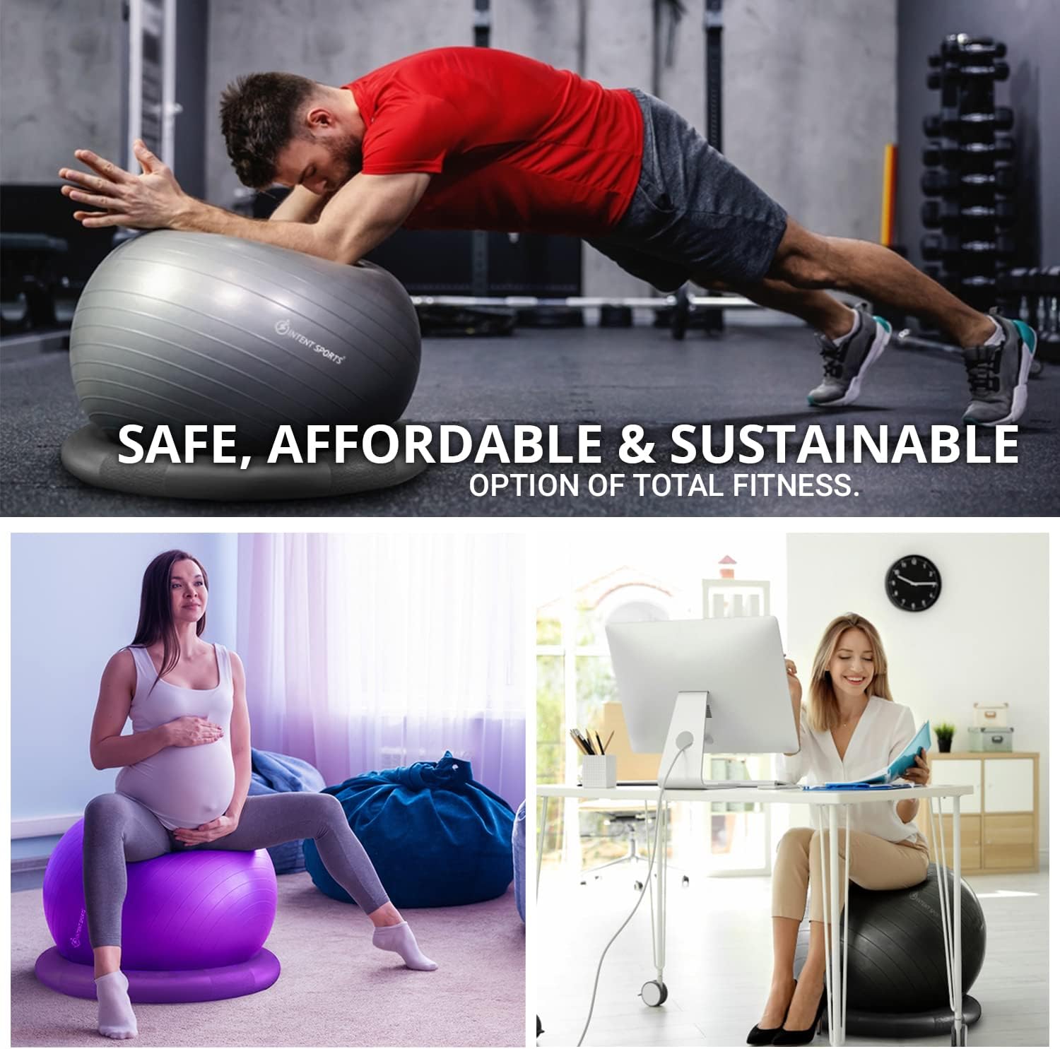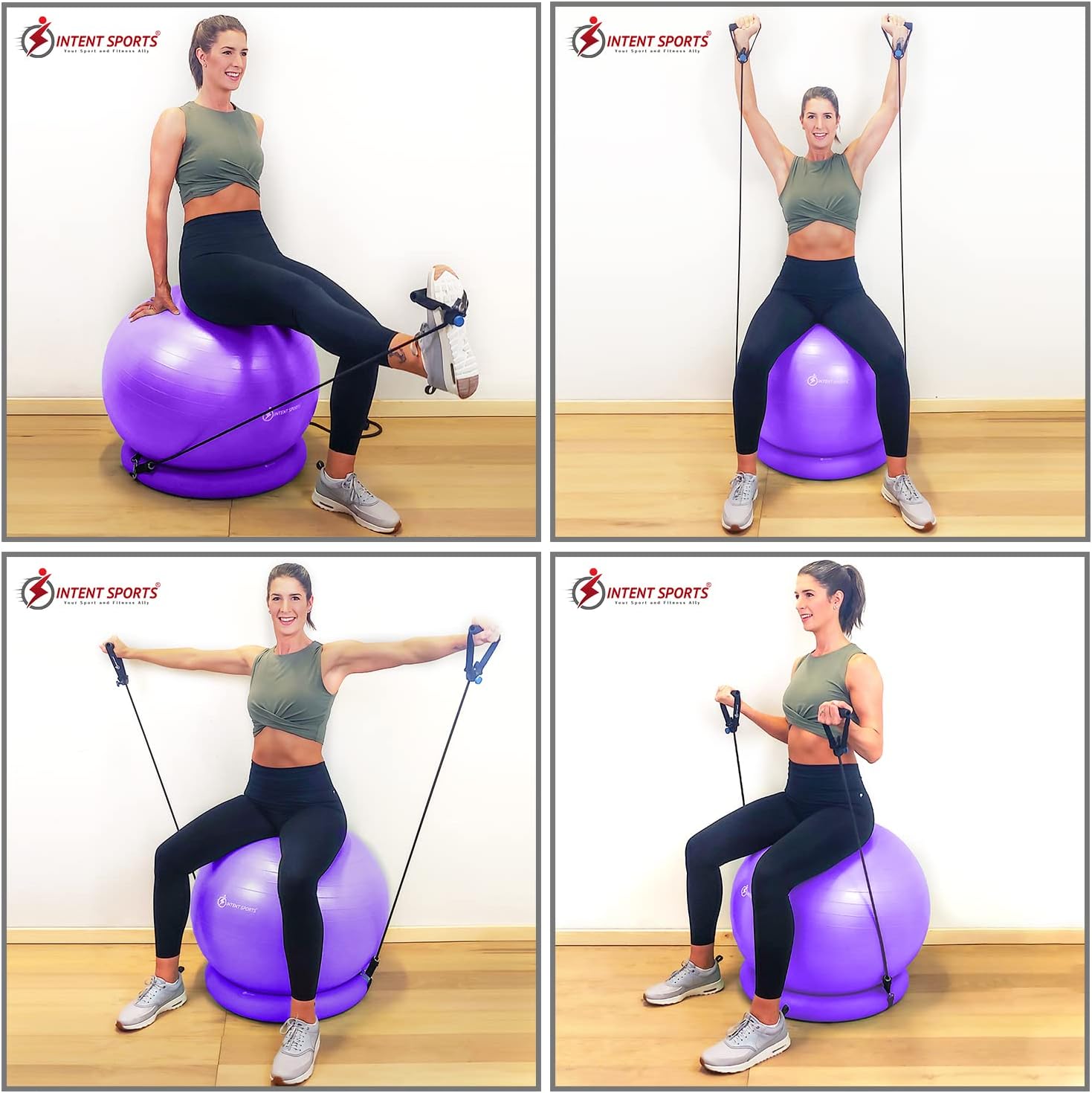 INTENT SPORTS Yoga Ball Chair – Stability Ball with Inflatable Stability Base & Resistance Bands, Fitness Ball for Home Gym, Office, Improves Back Pain, Core, Posture & Balance (65 Cm)