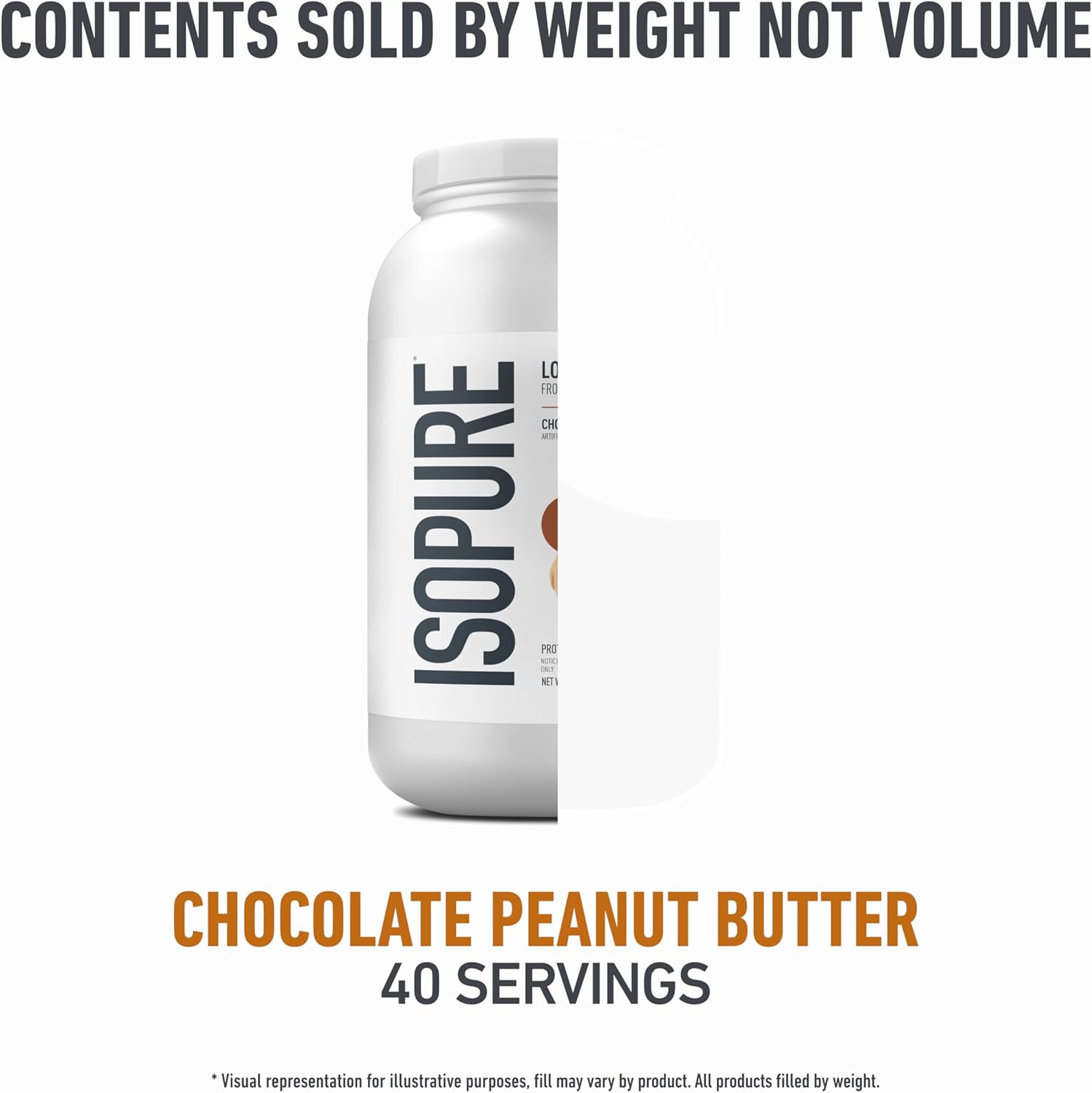 One 3 lb container (40 servings) of Isopure 100% pure whey isolate protein powder in delicious Chocolate Peanut Butter flavor