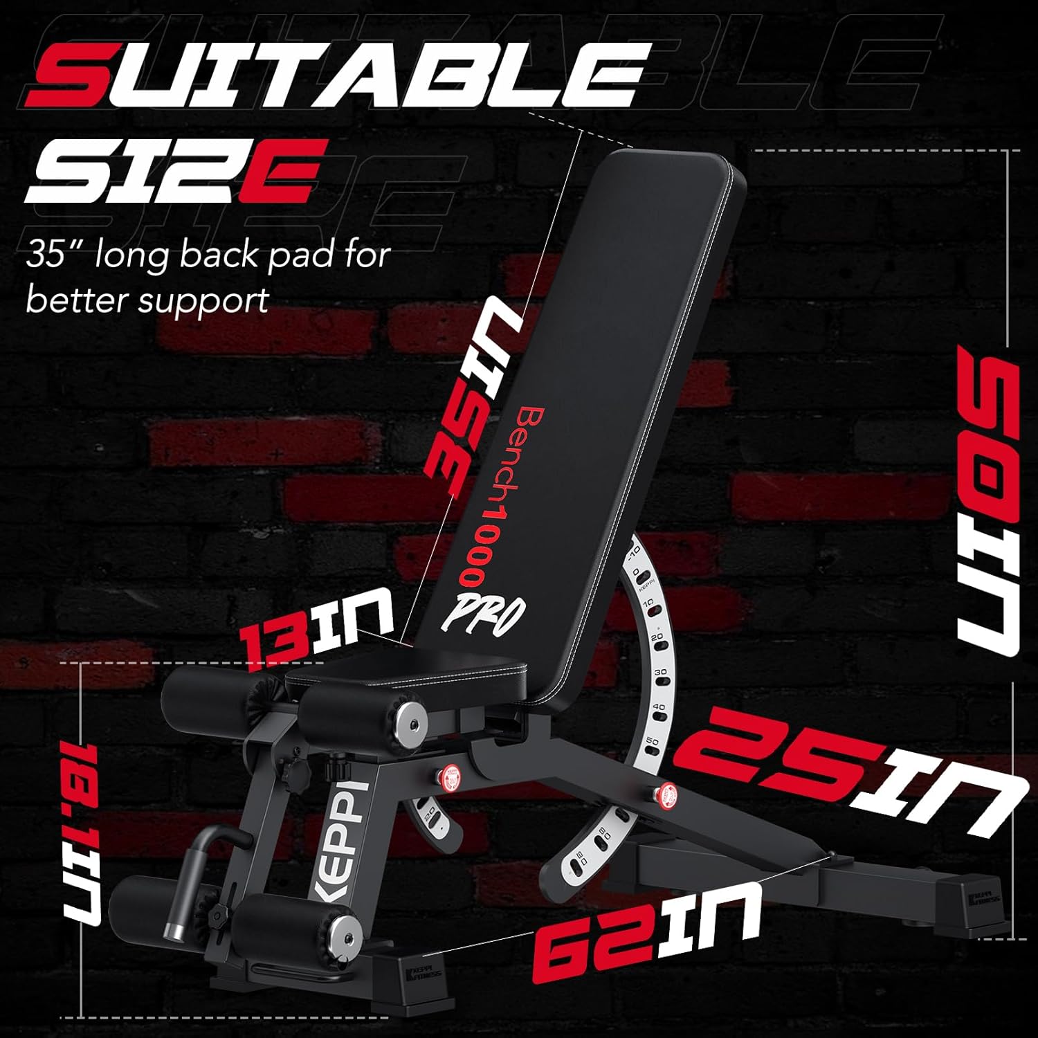 36+ Setting Combos Adjustable Bench – Bench1000 provides an outstanding stability and could easily withstand intense workout, 12 back pad position and 3 seat positions adjustments provide incline decline flat could meet most kinds of your home gym exercises.