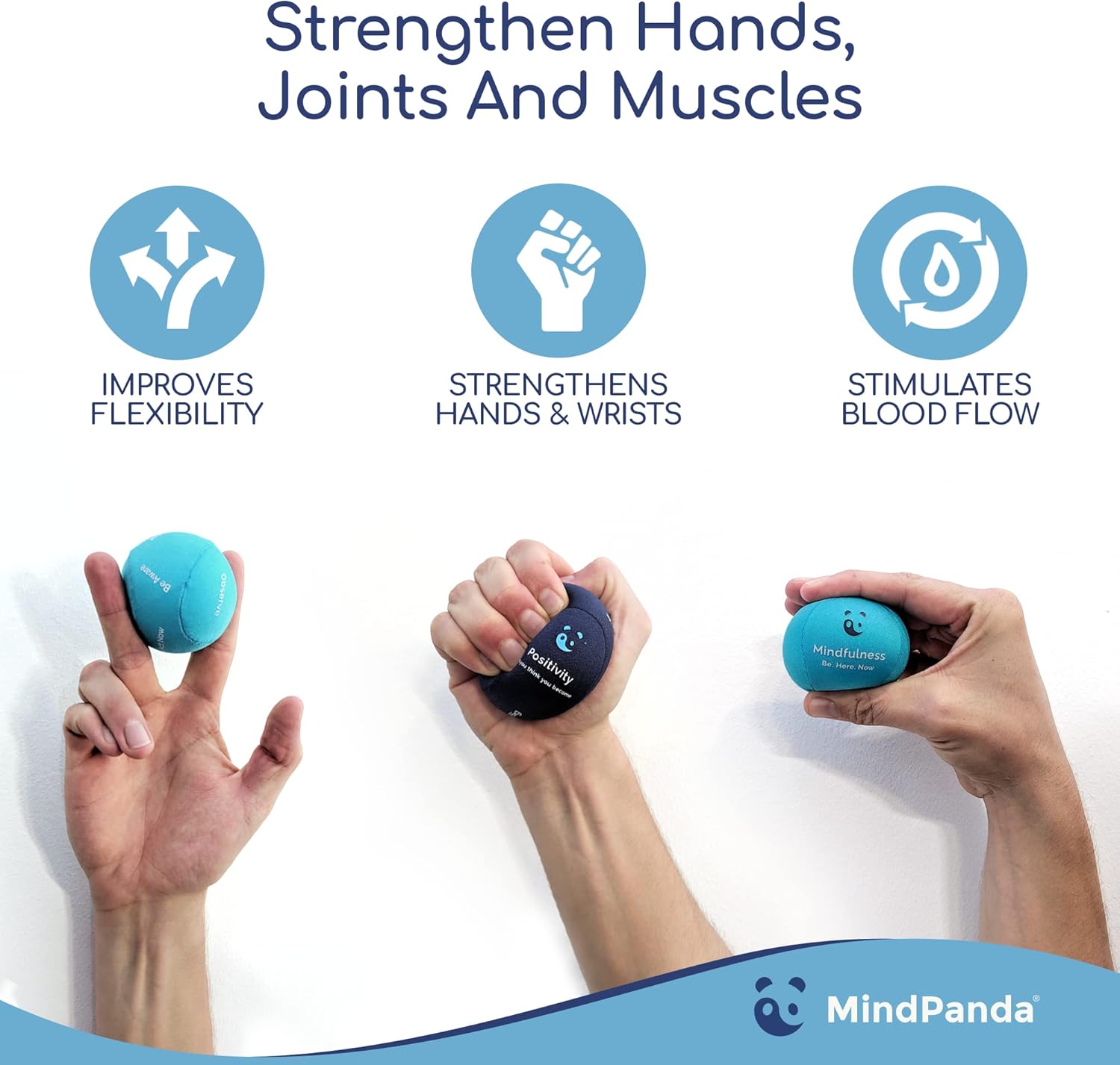 Multipurpose with 3 densities and sizes- MindPanda provides you the most versatility with our 3-pack stress ball bundle offering 3 sizes and 3 strengths: soft, medium and hard. Our squeeze balls equip you for warm up exercises, stress relief, strengthening and conditioning your grip, hand and finger muscles. From physical therapy and rehabilitation to stress and anxiety relief, we have you covered.