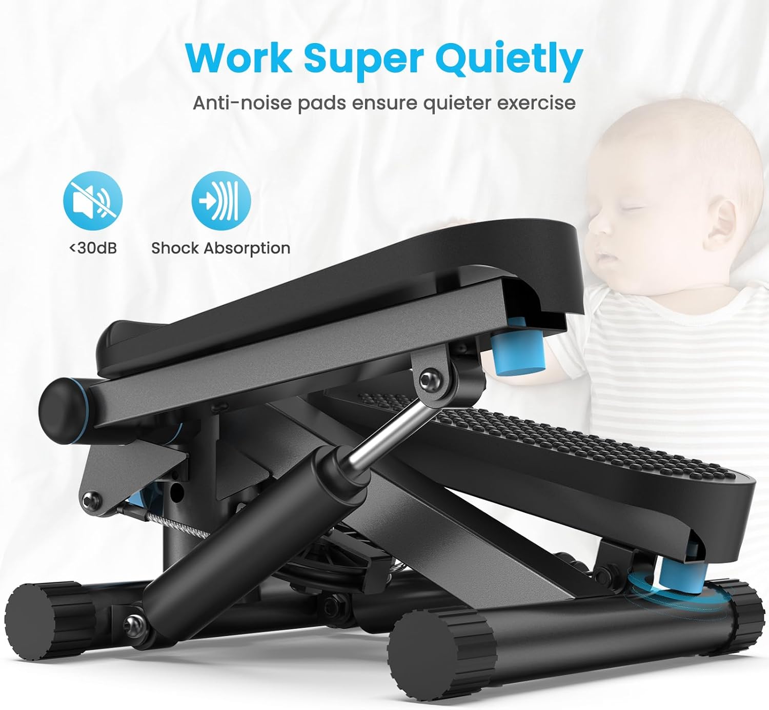 【QUIET & SMOOTH, NO SQUEAK 】The sound of home workout equipment < 30dB, there is a silent silicone cushioning pad under the stepper. High-quality Dual Hydraulics can be used 16W+ times after the tests.