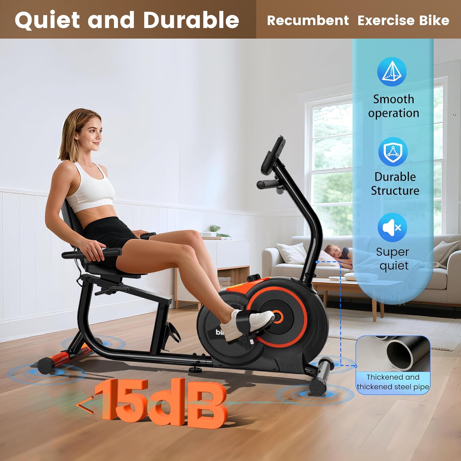 🔇【Whisper-Quiet & Built to Endure】This recumbent exercise bike features a precision-balanced 10LBS flywheel and advanced magnetic resistance system, delivering an ultra-smooth and virtually silent ride—perfect for early mornings or shared living spaces. Built with commercial-grade steel, the exercise bike supports up to 400 lbs, offering unmatched stability and long-term durability. Whether you’re focusing on cardio, rehabilitation, or low-impact movement, this quiet and reliable recumbent exercise bike is your go-to solution for home fitness.