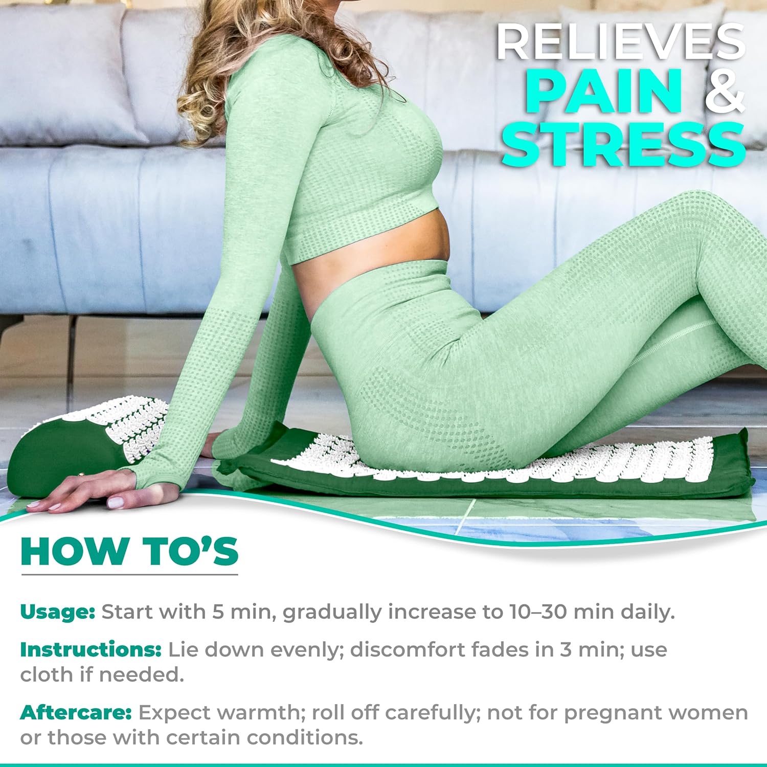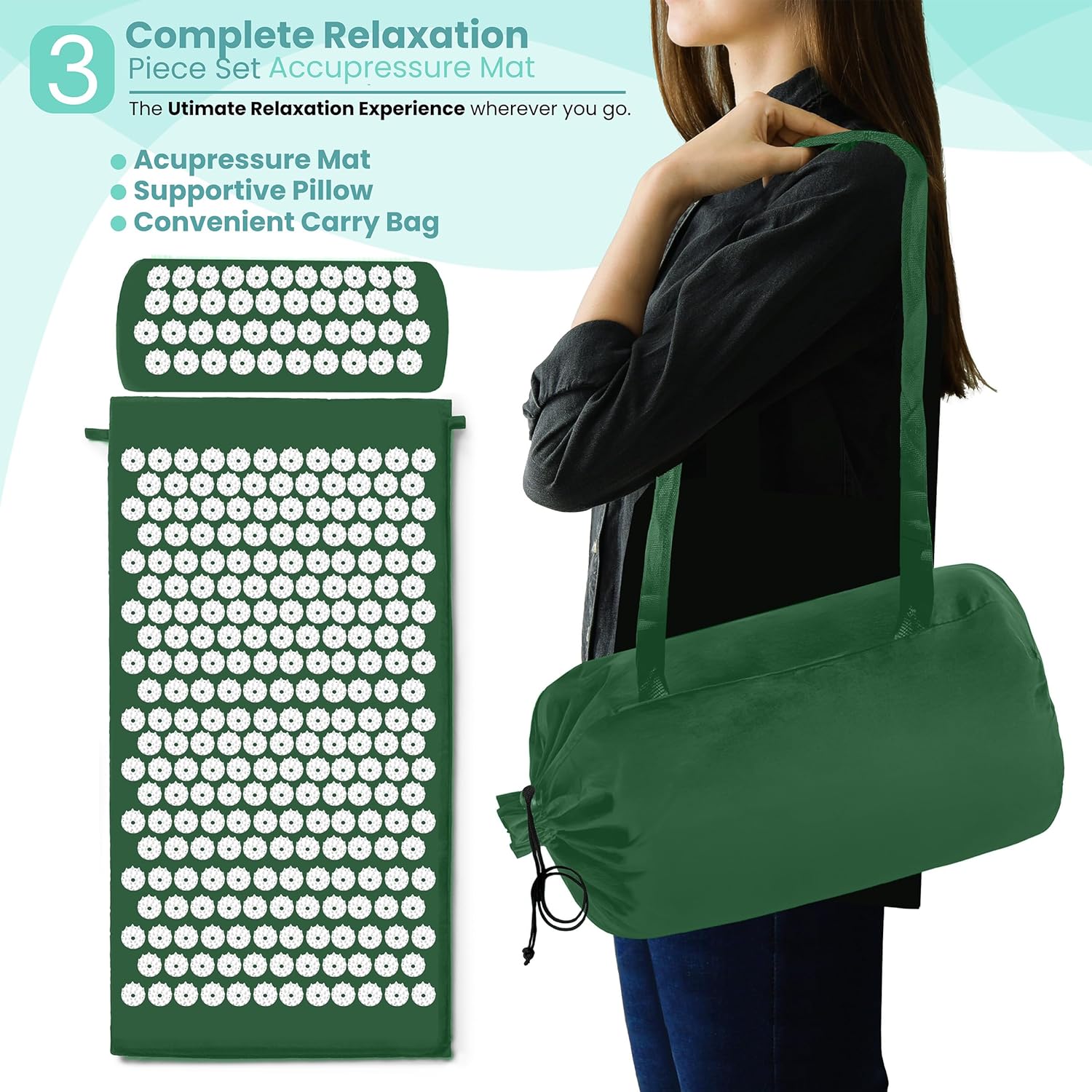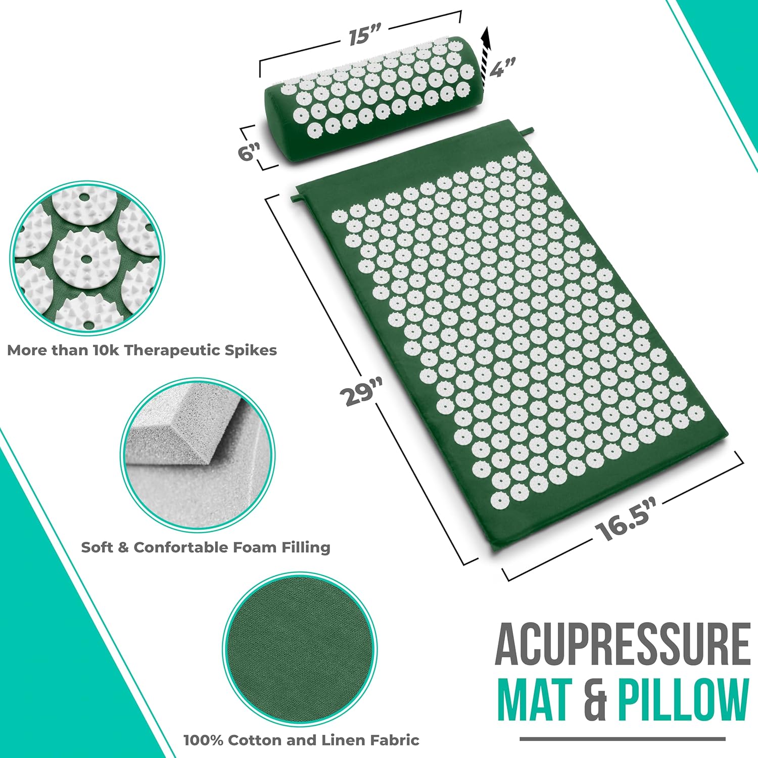 10 reviews for Sivan Back and Neck Pain Relief Acupressure Mat and Pillow Set, Chronic Back Pain Treatment – Relieves Your Stress of Lower Upper Back and Sciatic Pain – Green