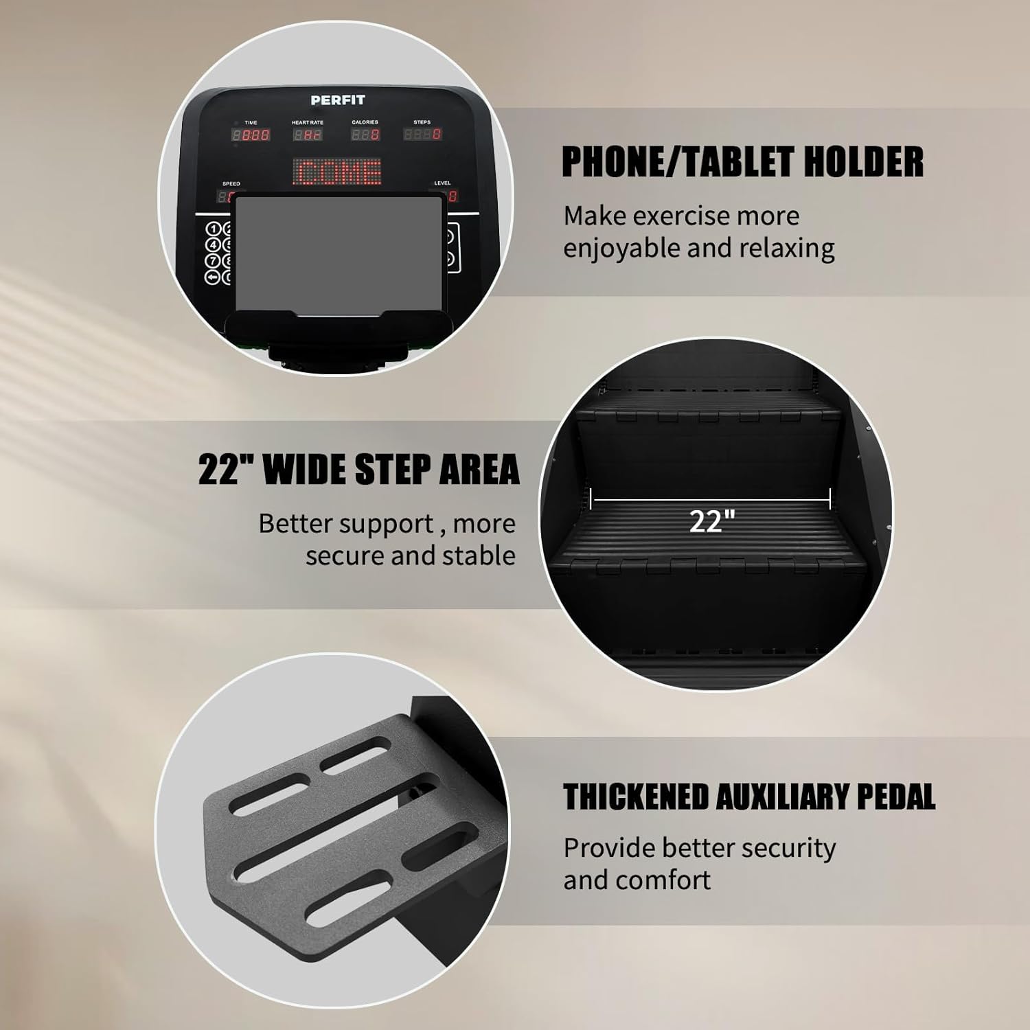 PERFIT Stair Machine: The PERFIT high intensity stair machine combines advanced technology with a rugged design to bring you the ultimate cardio and lower body workout experience. This stepmill is equipped with an LED screen that displays basic indicators such as mileage, calories and body fat percentage to provide you with real-time feedback, and offering 1-15 speed levels for users. This commercial grade stepmill exercise machine is an optimal choice for the gym and the home.