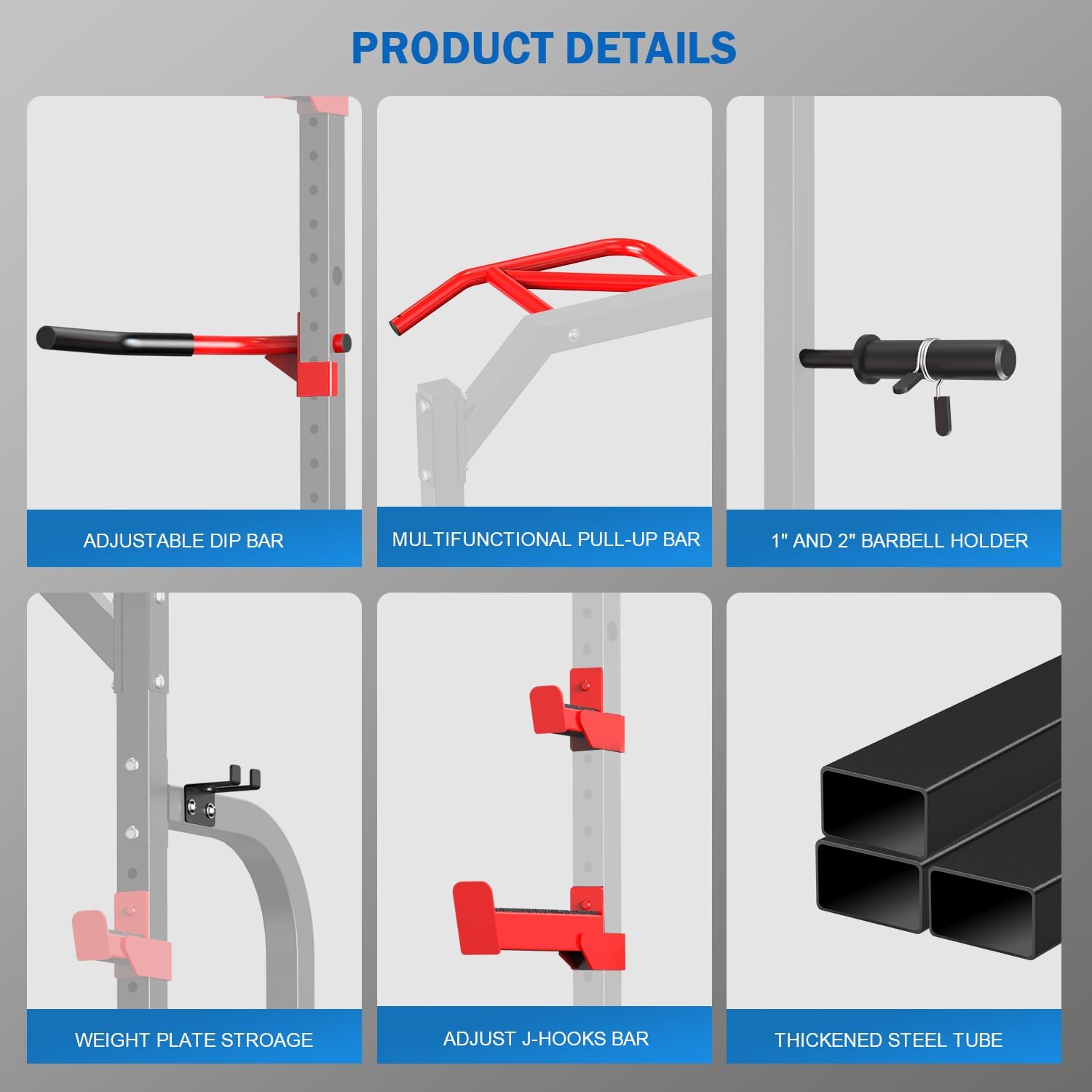 8 reviews for SunHome Power Cage Squat Rack with Bench, Multi-Functional Power Rack with J-Hooks, Dip Handles, Weight Plate and Olympic Bar Storage Home Gym