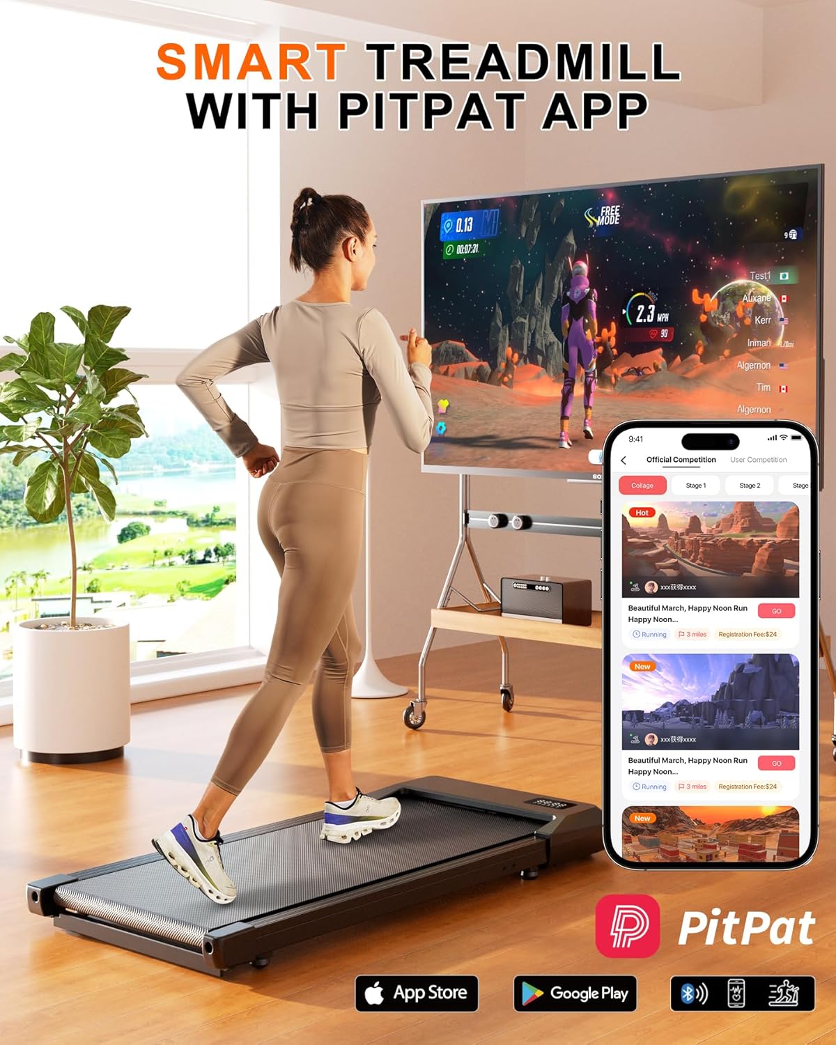 【CAN ONLY USE AFTER INSTALLING PITPAT】This unique Walking Pad for home use requires downloading PitPat for activation. Unlock its full potential with PitPat’s training, events, social features, and entertainment. Compete to win rewards and connect with runners worldwide. Download PitPat now to activate your under-desk treadmill and start your fitness journey.If you are unable to use it, please contact us for assistance.