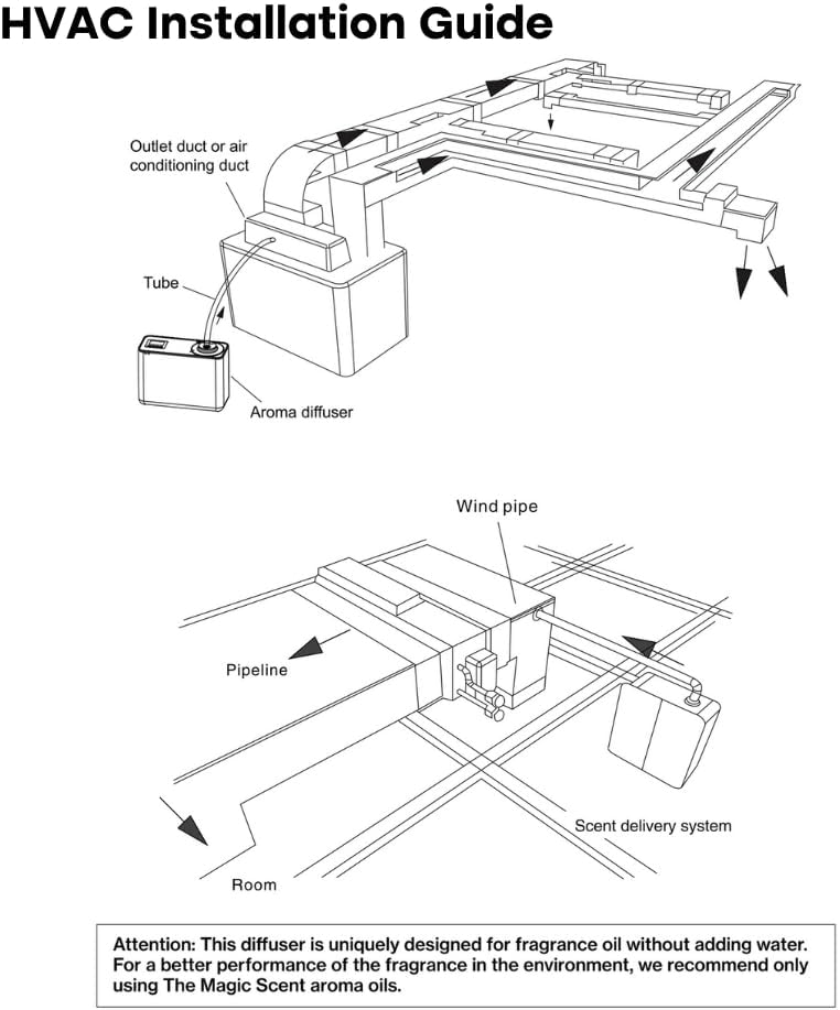 TURNS INTO AN HVAC SCENT DIFFUSER – Outstanding as standalone or wall-mounted units, TMS diffusers for home also fit your new or preexisting HVAC system for even better scent dispersal in larger spaces. The diffuser comes with a pre-attached nozzle for stand-alone use. To connect to an HVAC system, replace the nozzle with the included HVAC nozzle and attach the pipe. *Not suitable for large commercial spaces or mini-splits.
