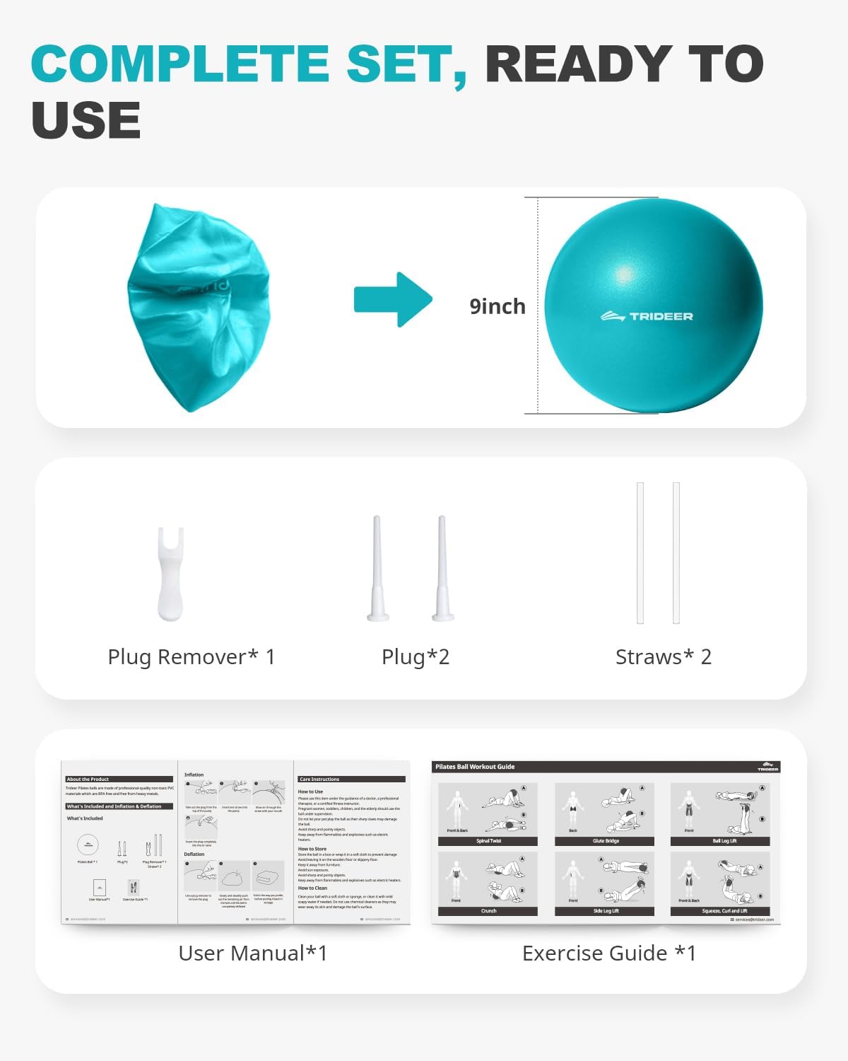 Reviewed in the United States on May 8, 2025Size: 9 InchColor: Ocean BlueVerified PurchaseI recently added the âTrideer 9-Inch Mini Pilates Ball to my home workout routine, and itâs been a fantastic addition. The ball is made of high-quality, anti-burst material that feels both sturdy and comfortable during exercises. Inflation was straightforward using the included straw and plug, and it holds air well without frequent reinflation.This mini ball is incredibly versatileâIâve used it for core strengthening, balance training, and even physical therapy exercises. Its compact size makes it easy to store and perfect for small spaces. The non-slip surface provides excellent grip, ensuring safety during workouts.Pros:⢠Durable, anti-burst material⢠Easy to inflate and retains air well⢠Versatile for various exercises⢠Compact and easy to store⢠Non-slip surface for added safetyCons:⢠Requires manual inflation, which might be a minor inconvenience for someOverall, the âTrideer 9-Inch Mini Pilates Ball offers excellent value for its price. Itâs a must-have for anyone looking to enhance their fitness routine with a reliable and versatile exercise tool.
