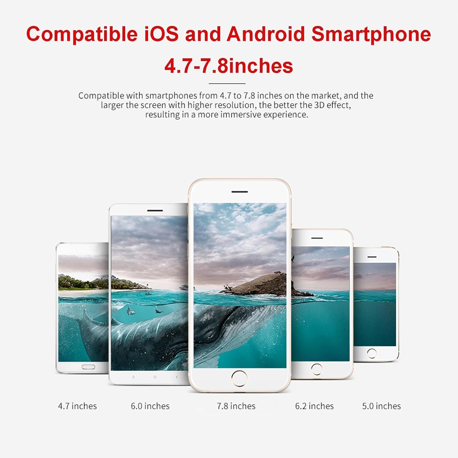 【VR Headsets Compatible with 4.7-7.8 inch Phones New 3D VR Glasses】VR Glasses can fit for most non-curved smartphones with screen sizes from 4.7 ~ 7.8 inch compatible with iPhone, Samsung, Huawei, Xiaomi, LG, One Plus, Sony with all smartphones.
