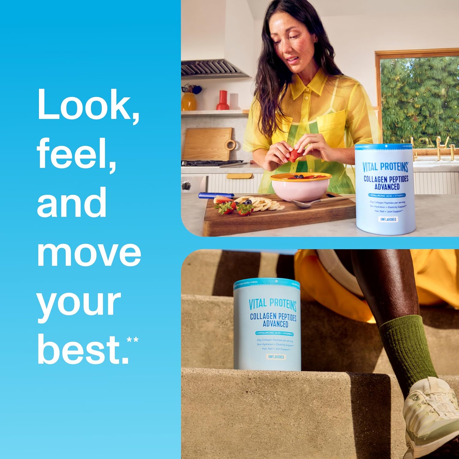 SUPPORTS COLLAGEN PRODUCTION: With 100% daily value of Vitamin C, this Vital Proteins Collagen Peptides Advanced Powder helps promote collagen production which is important for maintaining healthy skin