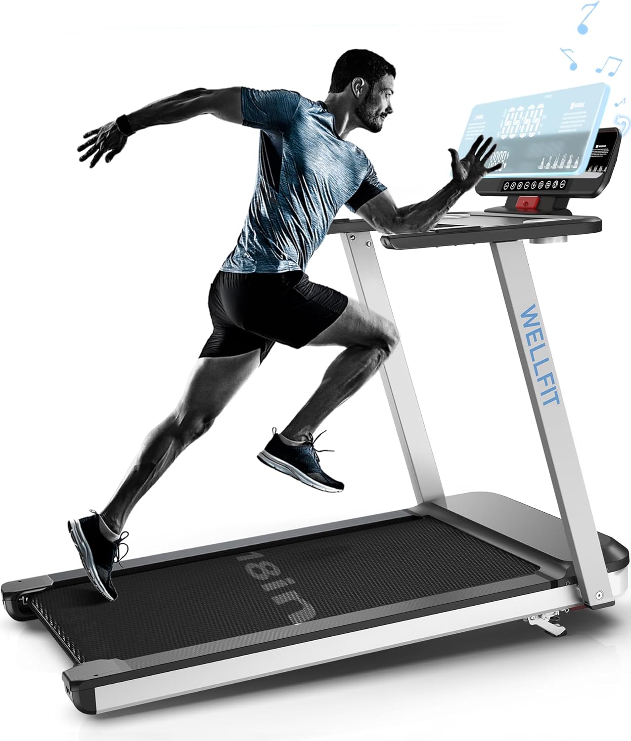 【Smart APP Voice Controll】The WELLFIT App’s voice control feature enables effortless control of the treadmill during exercise: Hi, choose a plan A! The app offers a range of pre-set workout programs, providing diverse challenges and goals to maintain engaging and effective workouts. Notably, there are no subscription fees. Additionally, the treadmill is compatible with Kinomap, catering to different exercise habits.