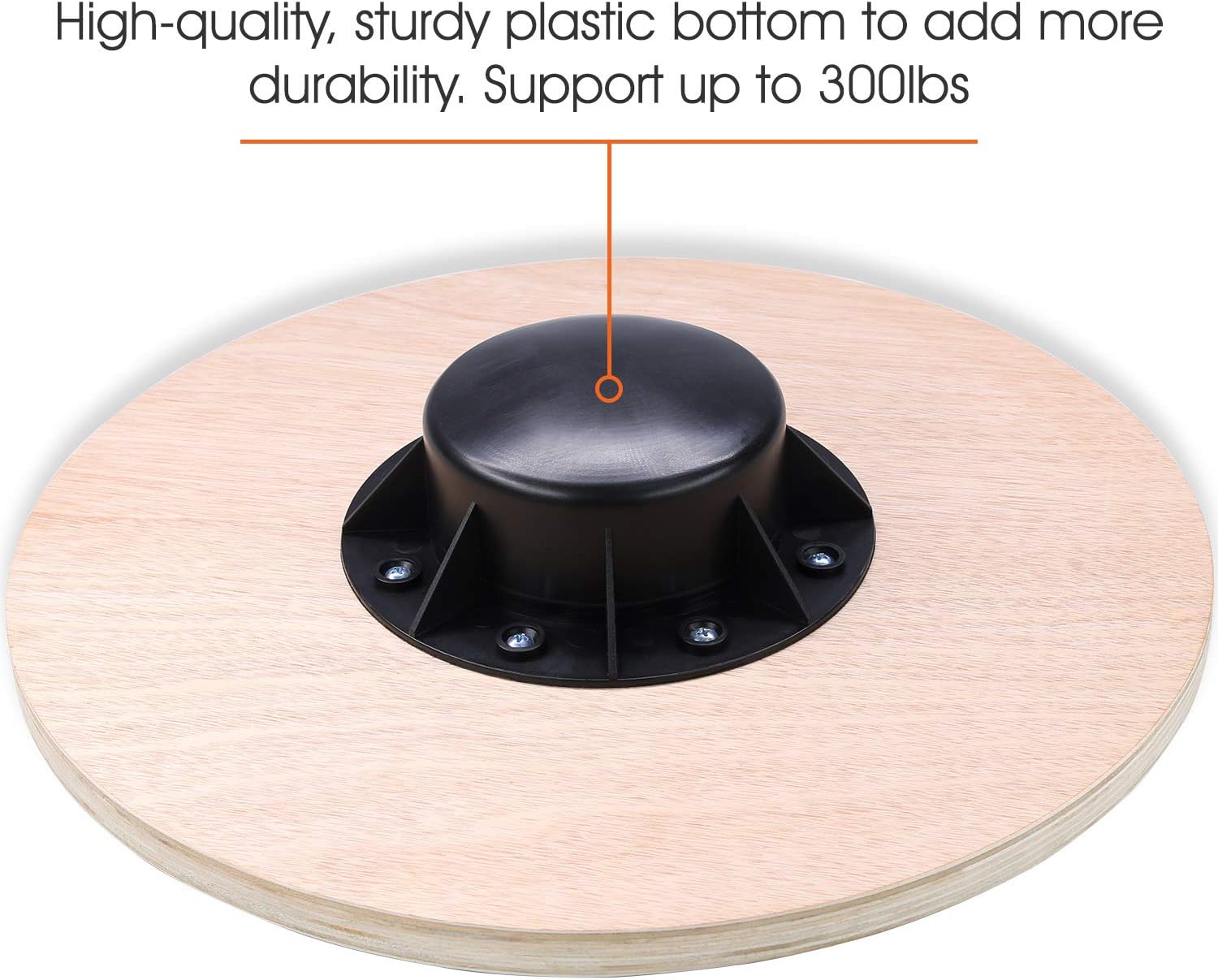 300-POUND STURDY CONSTRUCTION: Solid wooden wobble balance board can support up to 300 pounds and offers a stable platform for your workouts; The 15 3/4 inch broad baps board accommodates both feet