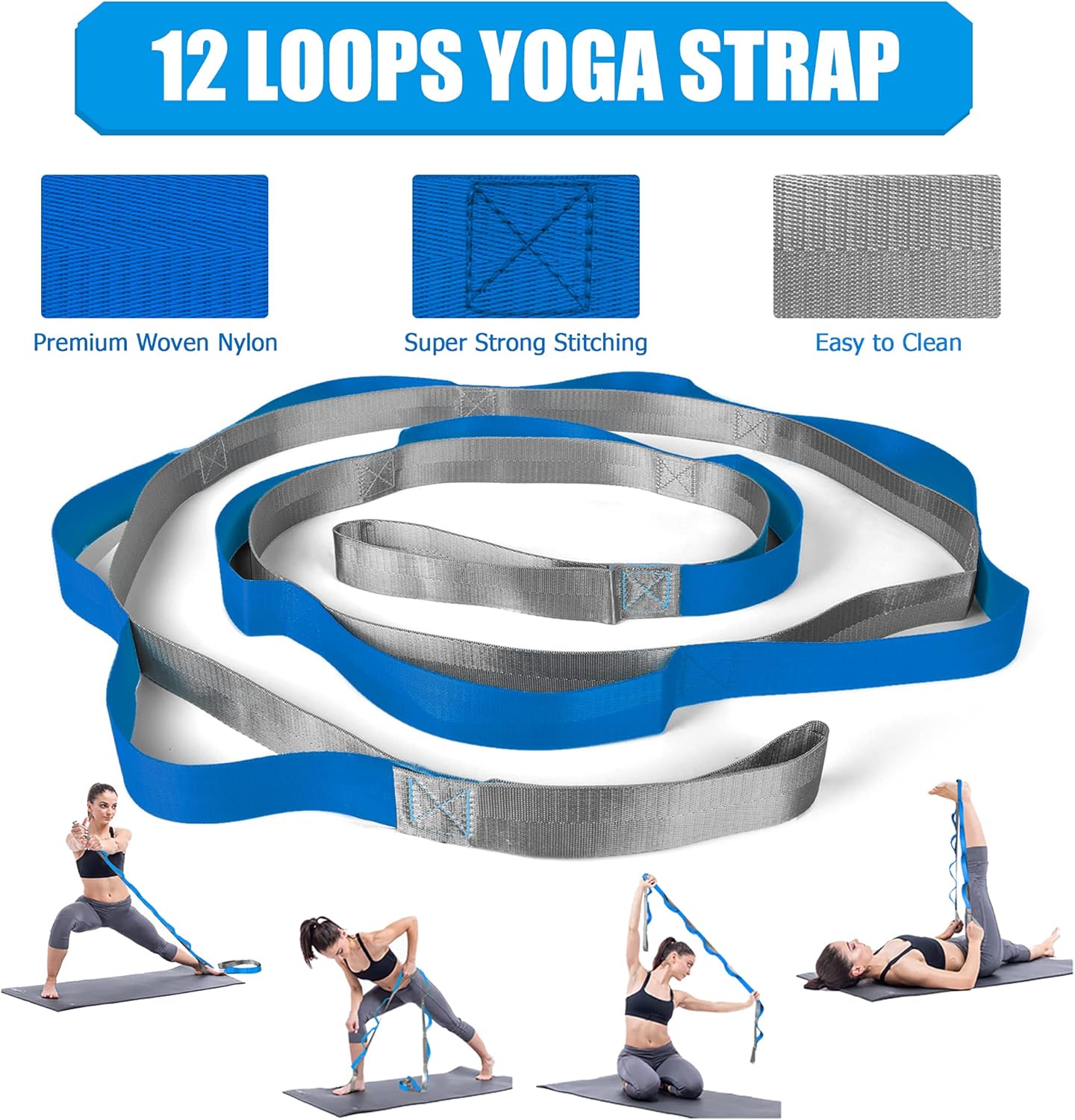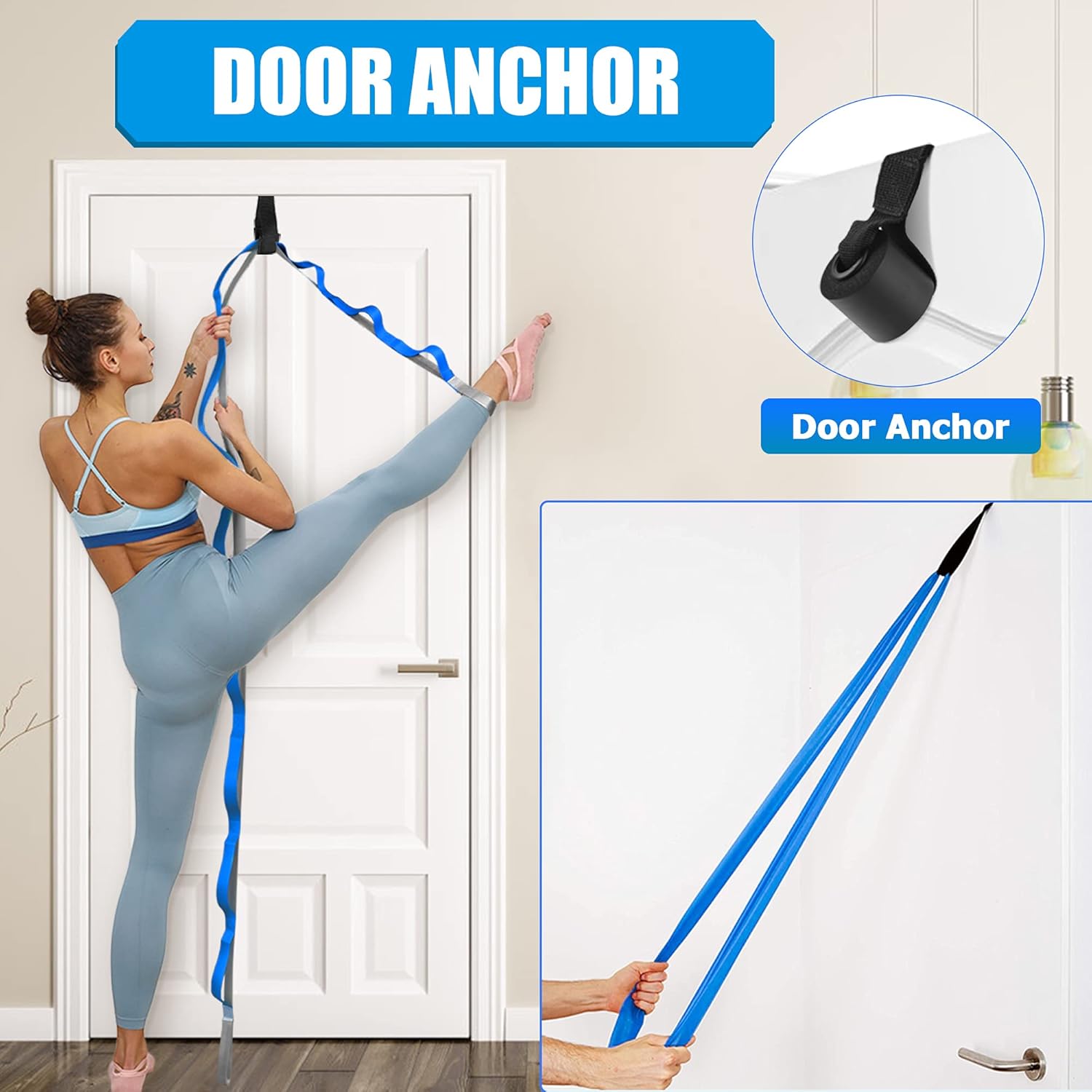 【Yoga strap & Resistance Band with Door Anchor】8′ long and 1.2″ wide yoga straps for stretching with 12 independent loops, you can hold your stretching positions more accurately and stretch your muscles correctly and safely.6.5’long and 6″ wide resistance bands provides great elasticity and high resistance, never losing its shape, rip or fray.With the door anchor, you can do more exercise to stretch your body.